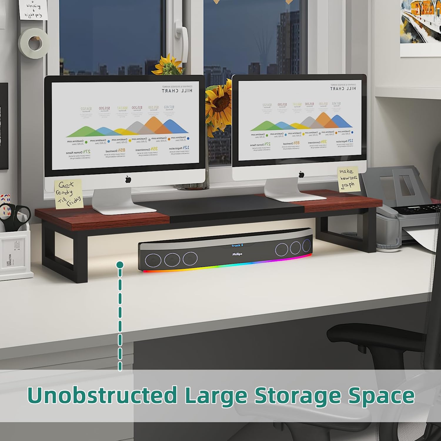 Dual Monitor Stand Riser, 39Inch Large Monitor Stands for 2 Monitors, Computer Monitor Stand, Wooden Desktop Oraganizer Shelf for Office Desk Computer,Laptop,TV