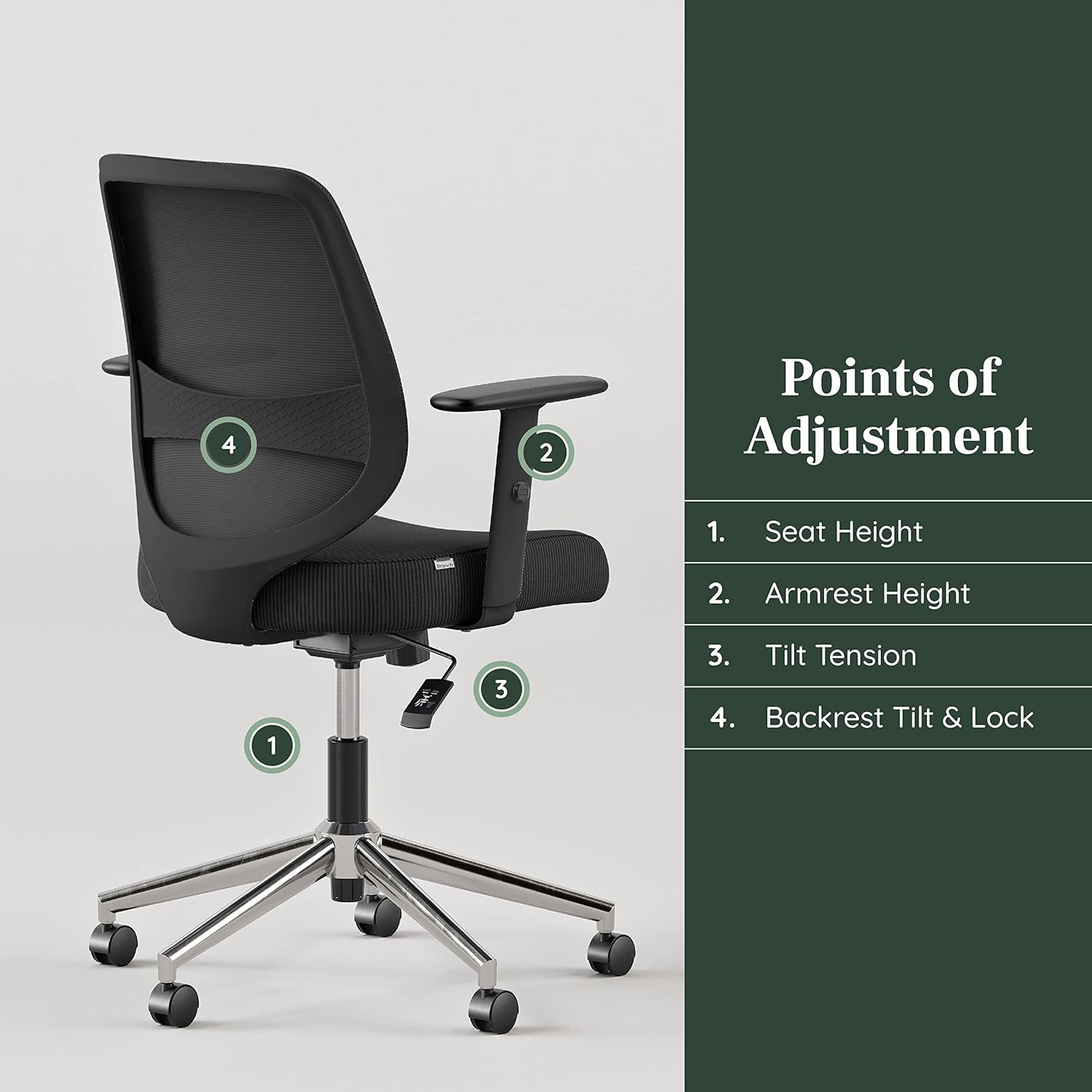- ADJUSTABLE SEAT: Branch Daily Chair features a customizable seat height, allowing you to find the perfect position for your size and posture. Say goodbye to uncomfortable computer chairs and hello to a healthier work experience.