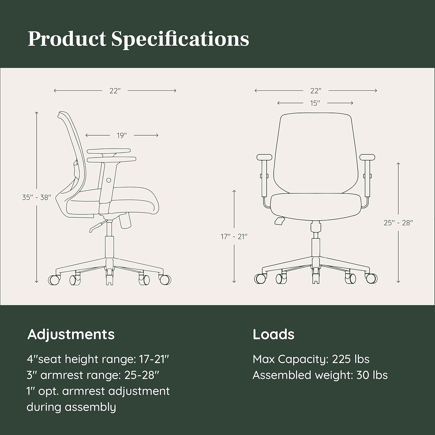 - Product Dimensions : 22"D x 22"W x 38"H