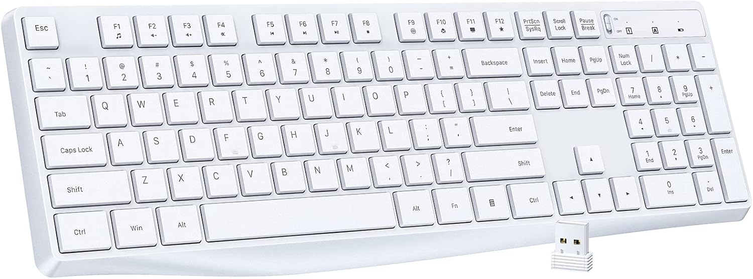 Lovaky Wireless Keyboard, 2.4G Ergonomic Wireless Computer Keyboard, Enlarged Indicator Light, Full Size PC Keyboard with Numeric Keypad for Laptop, Desktop, Surface, Chromebook, Notebook, Snow White
