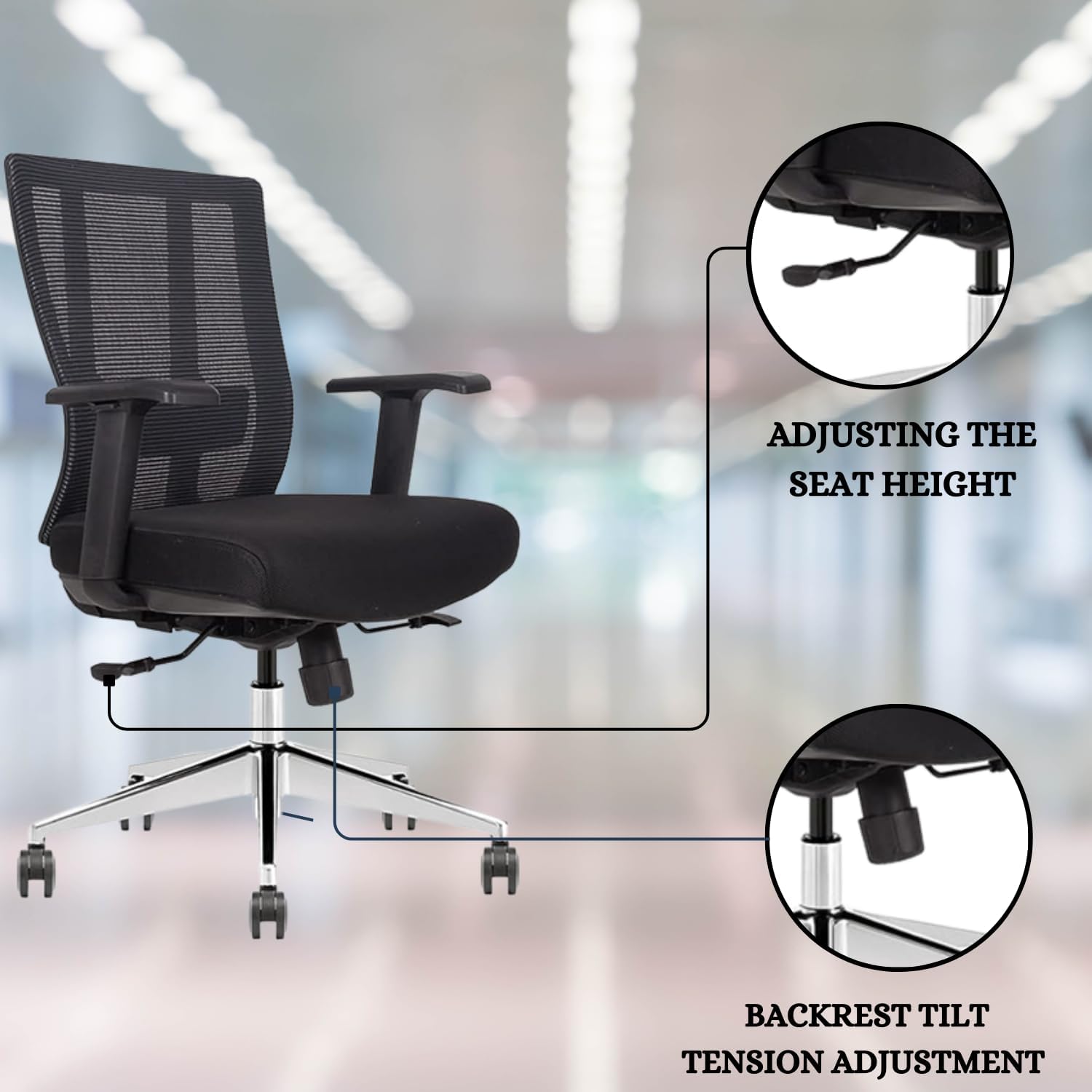 - Breathable Mesh: The mesh back on this office desk chair provides support while keeping your back cool and comfortable. Compared to conventional chairs, the mesh allows air to circulate, keeping your back sweat-free and allowing you to sit comfortably for longer periods of time.
