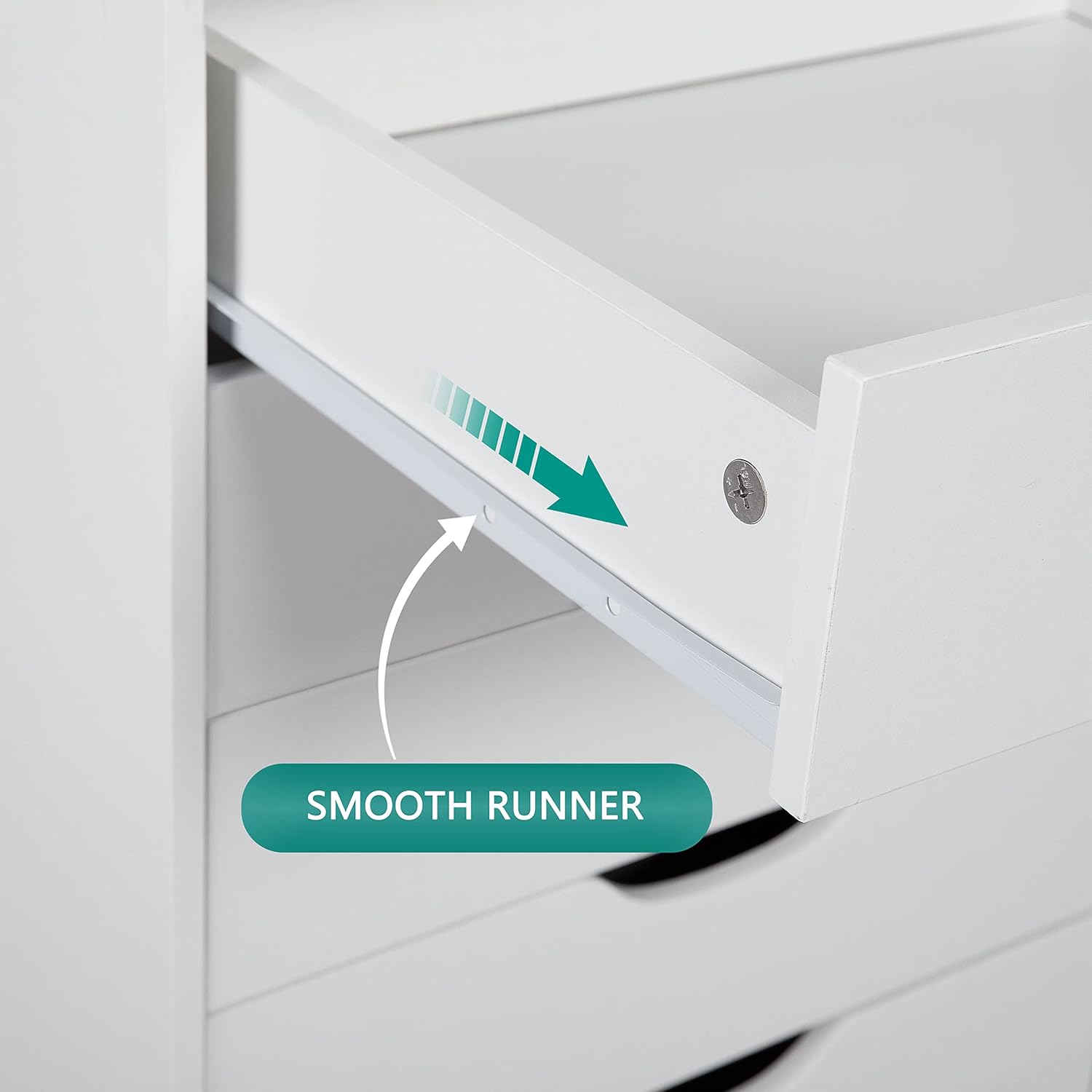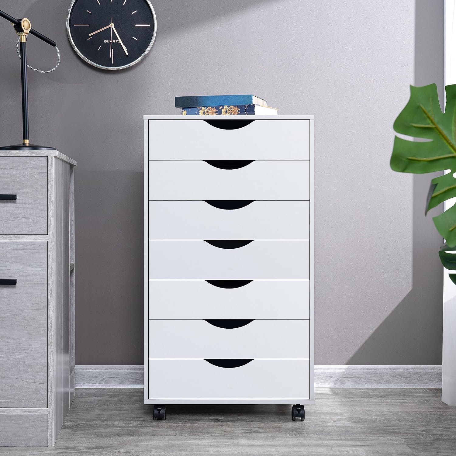 Naomi Home 7 Drawer Office Storage File Cabinet,Under Desk Cabinets for Home Office,Organization Filing Cabinet with Wheels,Printer Stand Storage,180 lbs Capacity – White(11272AM)