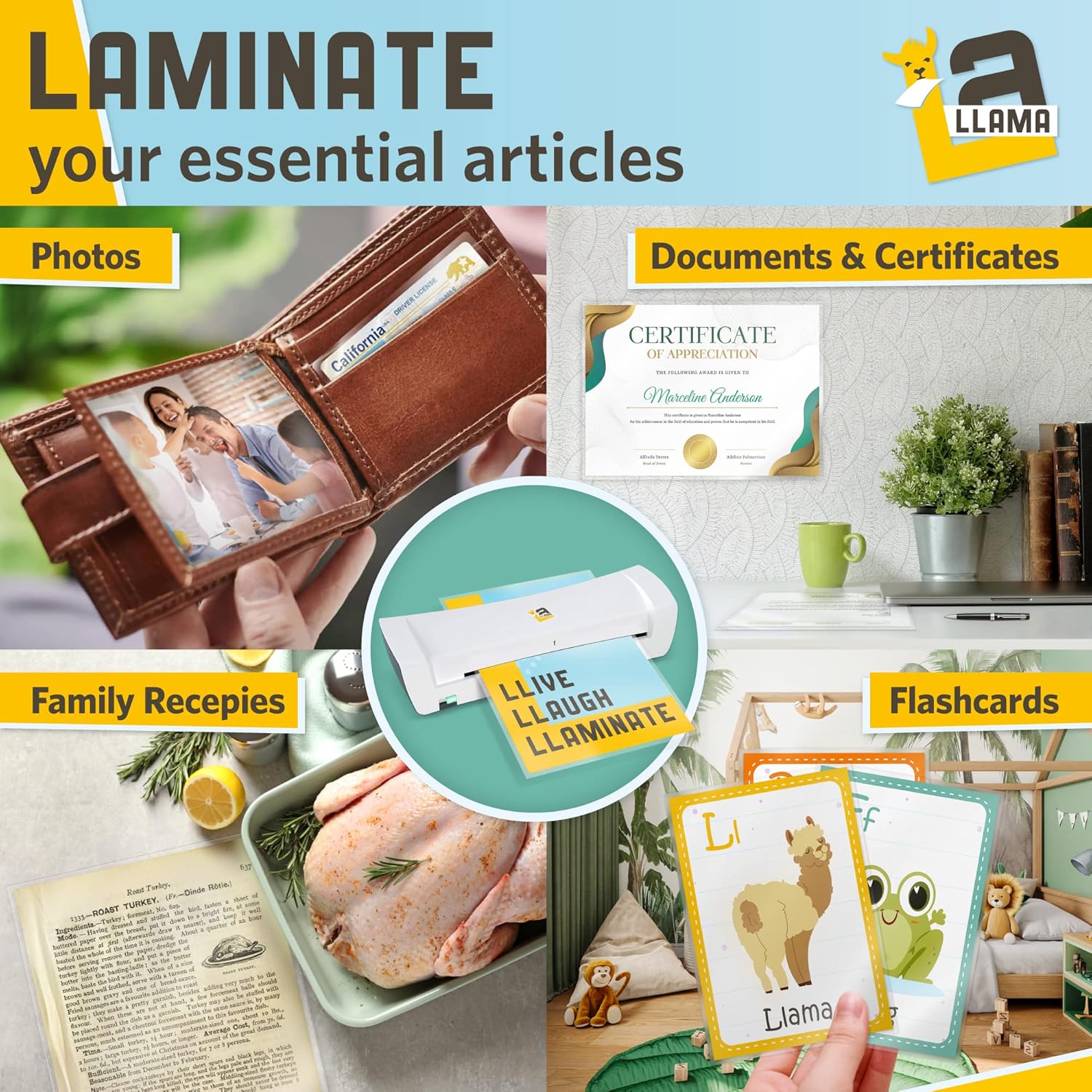 - š¦ BONUS FOLDABLE SCISSORS: Conveniently trim thermal laminating pouches to fit various sizes, such as laminating sheets 8.5x11, 8.9 x 11.4, 5 x 7, 4 x 8, 4 x 6, and 3 x 5 inch papers; appropriate to laminate paper, teacher classroom supplies, business cards, sticker labels, pictures, and any other important documents that require safeguarding