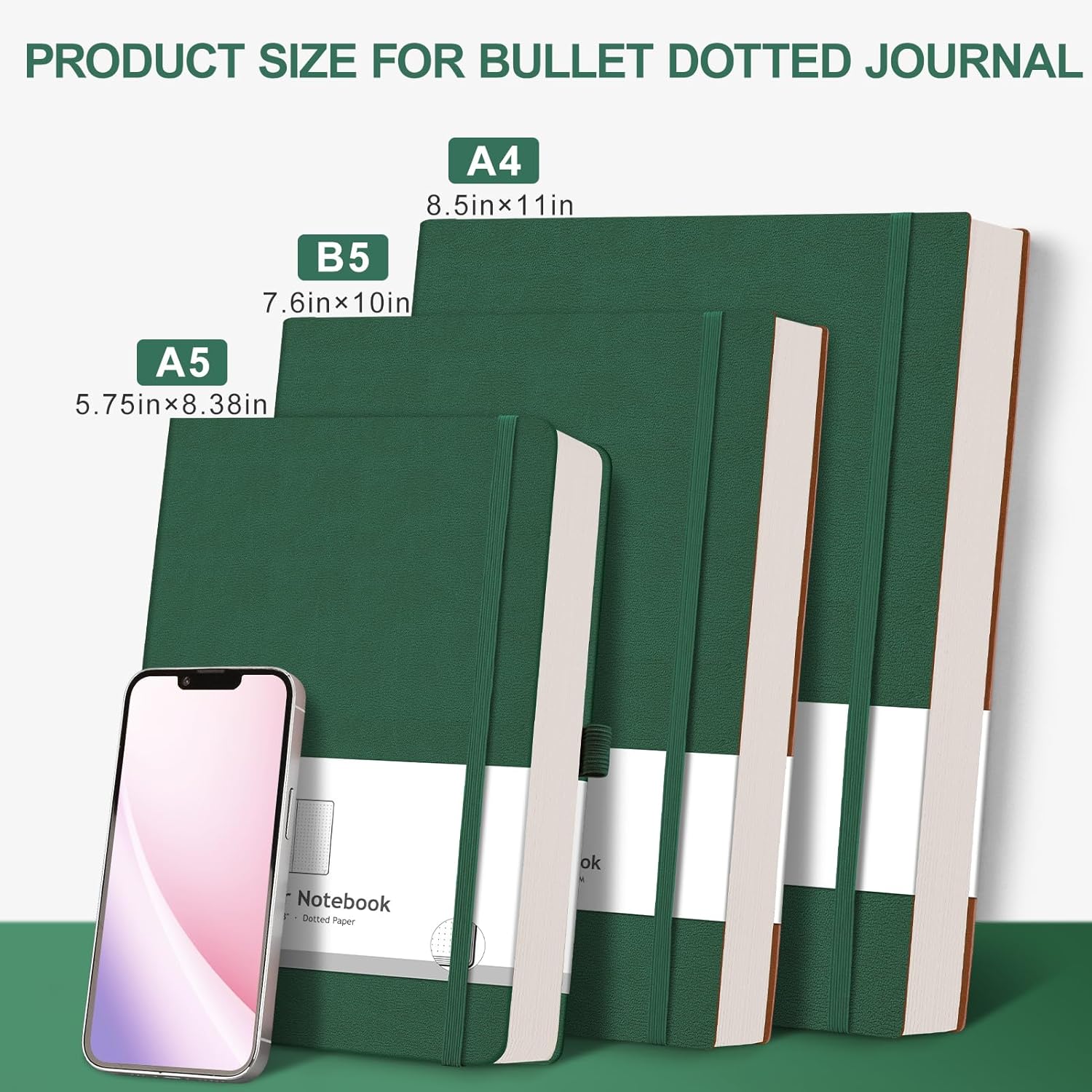 AHGXG Bullet Dotted Journal - 320 Pages Dot Grid Notebook B5 Large Journal, 100gsm Thick Dotted Paper, Leather Softcover, with Journal Stencils, Inner Pocket, 7.6'' X 10'' - Green