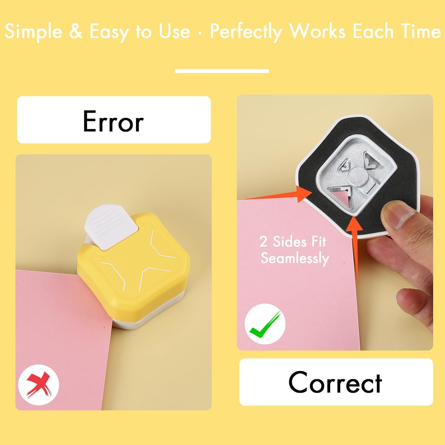- CRISP CUTS AND EASY TO USE: To use this corner paper punch, push the corner of your paper inside until itβs lodged adequately against the sides, and press the handle down. The corner punch can also be used upside down to view the cutting process better.