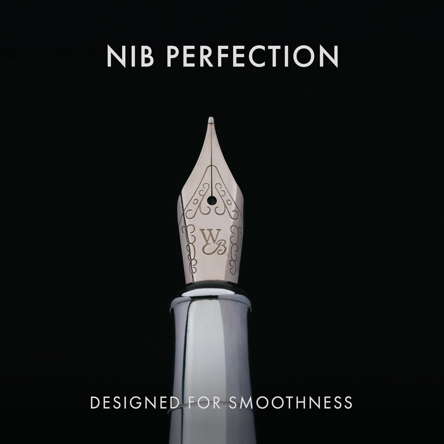 - ✒️Discover The All-inclusive Refillable Fountain Pen Set - Includes luxurious fountain pen, ink converter, 24 Pack Ink Cartridges, and a Gift Pouch - ready to be gifted. Each calligraphy ink and fountain pen ink cartridges comes in a plastic re-closable case and will last you at least 2 weeks of regular use. With every order is a complete instruction booklet for your Wordsworth and Black Pen Set. All the information you'll need to get started using and enjoying your luxurious writing tool!