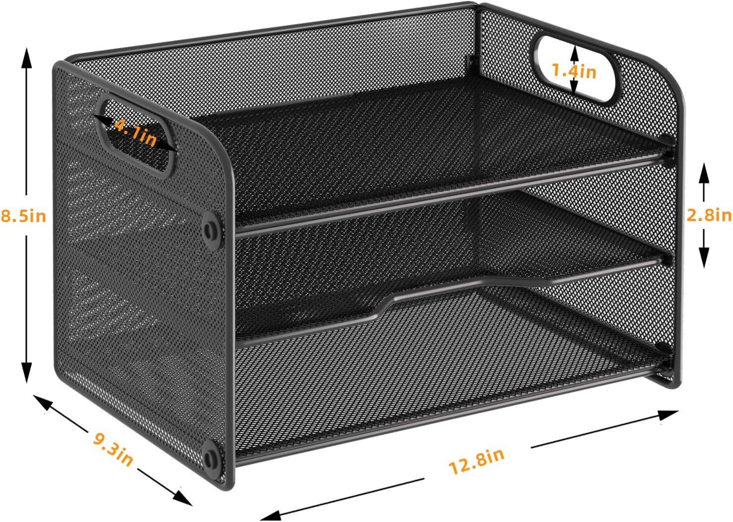 Samstar 3 Tier Letter Tray Paper Organizer with Handle, Mesh Desk Organizer Paper Sorter File Rack Shelves, Black