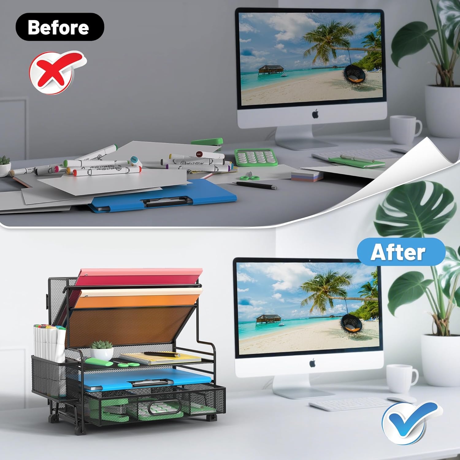 - Space-Saving Design: The 5-tier structure maximizes vertical storage, keeping your desk tidy and organized without taking up excessive space
