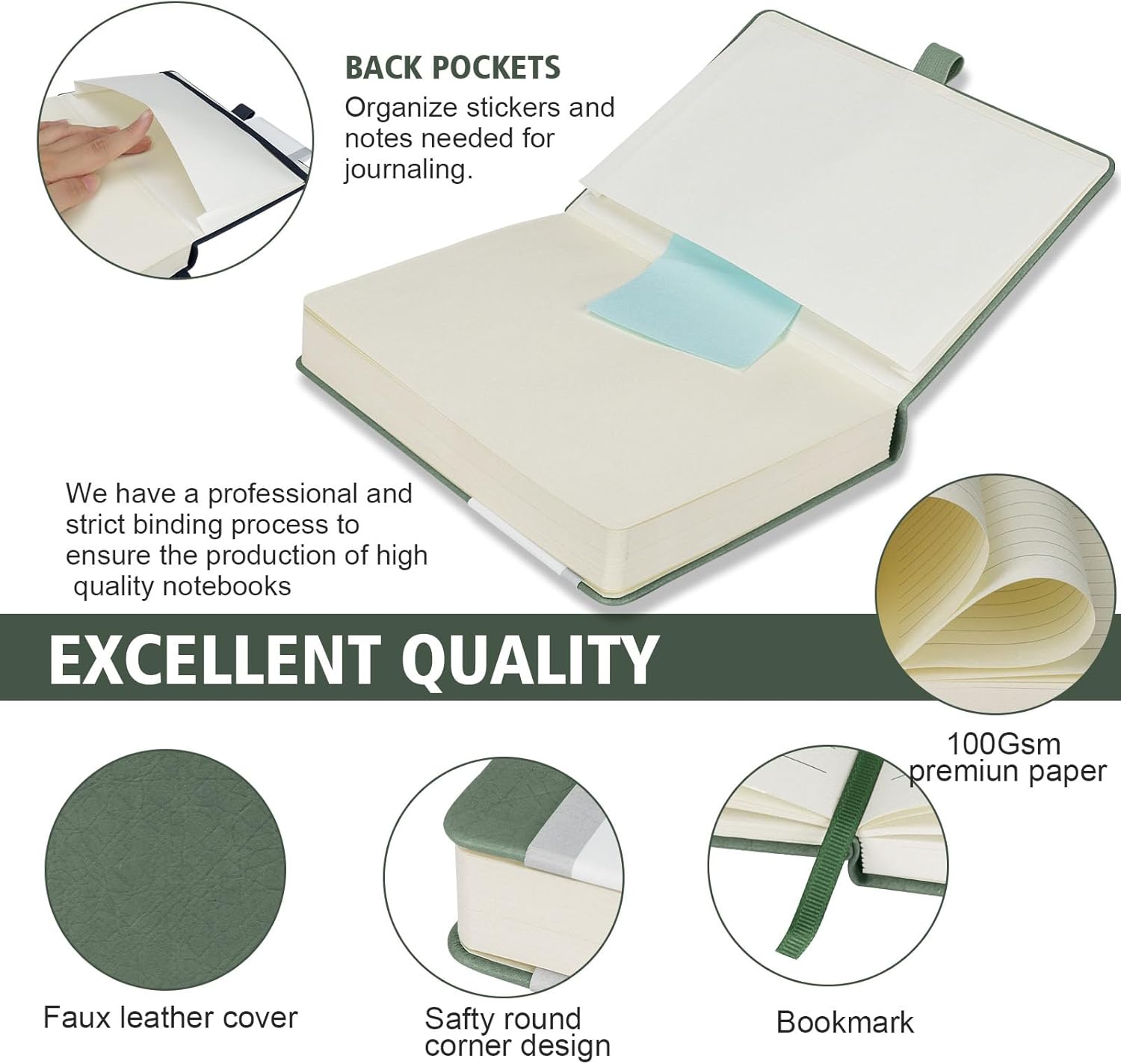 Lined Journal Notebook, 360 Numbered Pages(With page number), Thick Journal for Writing A5 College Ruled Notebook, 100gsm Lined Paper, Leather Hardcover, 5.75'' X 8.38''-Morandi Green