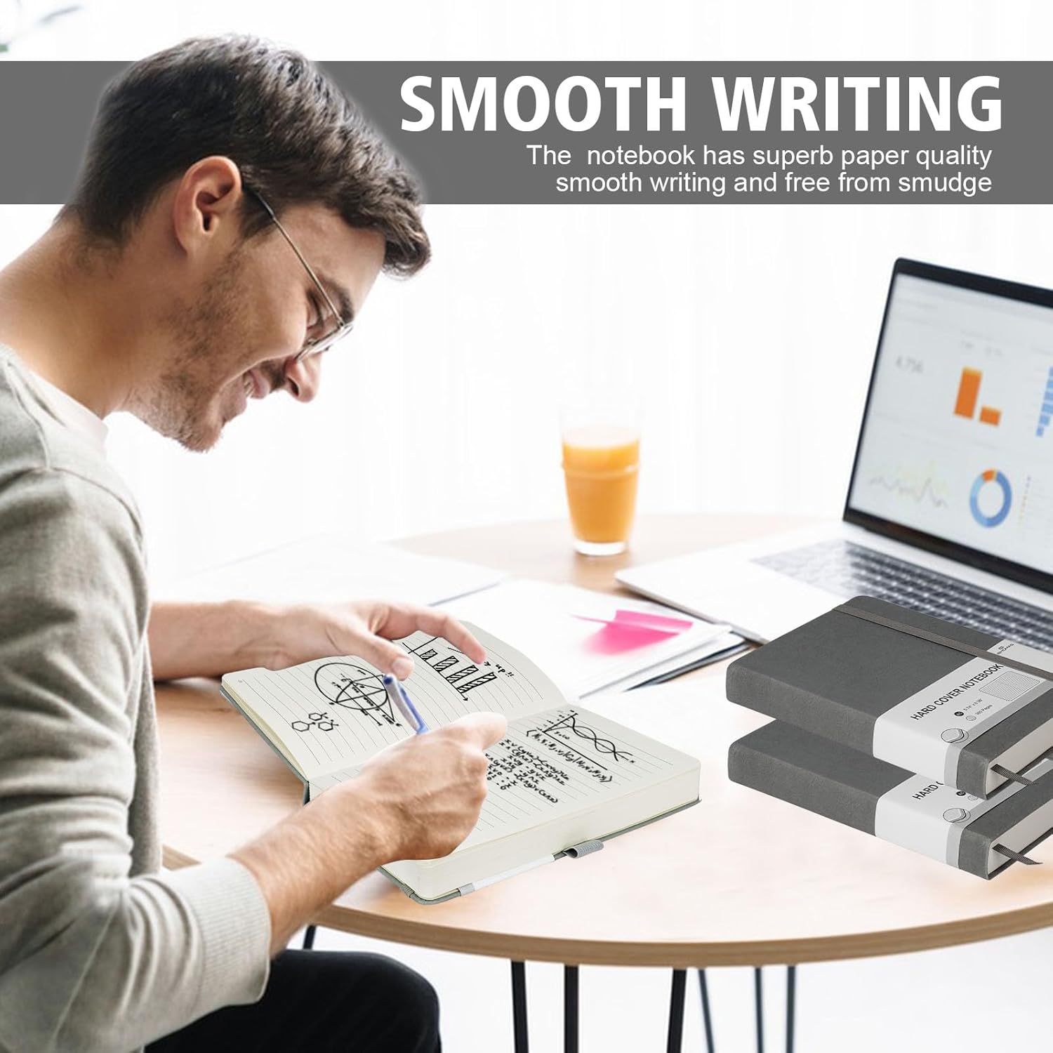 Lined Journal Notebook, 360 Numbered Pages(With page number), Thick Journal for Writing A5 College Ruled Notebook, 100gsm Lined Paper, Leather Hardcover, 5.75'' X 8.38''-Wall Gray