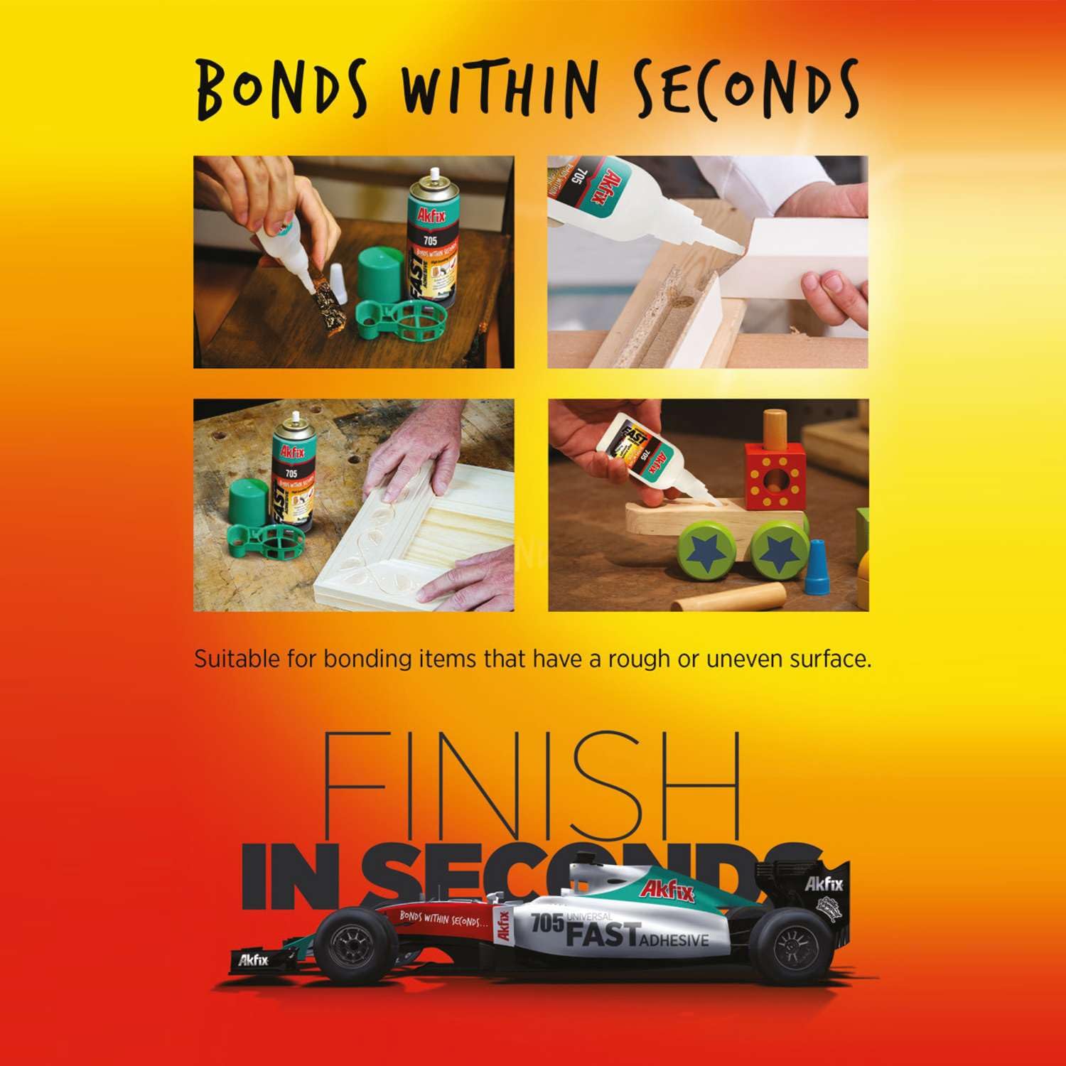 - VERSATILE APPLICATIONS IN WOODWORKING AND BEYOND: From woodworking projects to DIY repairs, Akfix 705 Fast Adhesive offers unparalleled versatility. Whether you're bonding wood, plastic, metal, leather, or ceramic, this adhesive is your go-to solution for a wide range of applications, delivering permanent results with ease.