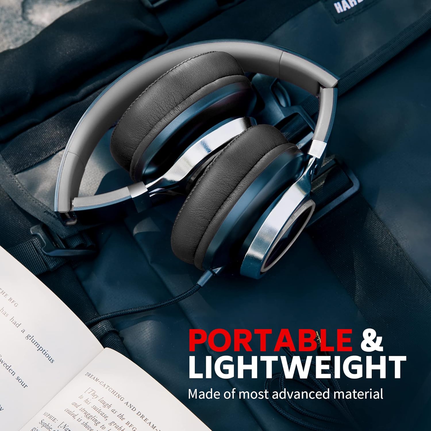 - Truly Over Ear & Long-lasting Comfort: AC01 wired headphones features enlarge 1/3 bigger deeply cushioned ear pads than others, with high grade protein leather and breathable mesh, softly surround the entire ears making you feel extremely comfortable and isolating noise to enjoy your favourite media all-day long. Adjustable headband with a centre relief zone is made of premium lightweight TPU material, which is ergonomically designed for long-lasting comfort and perfect fit for teens, adults, and kids aged 12 and older