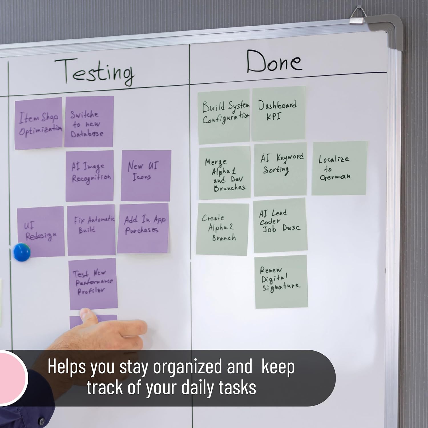 - Each sticky note measures 3”x3”, providing ample space for quick notes, reminders, or short to-do lists.