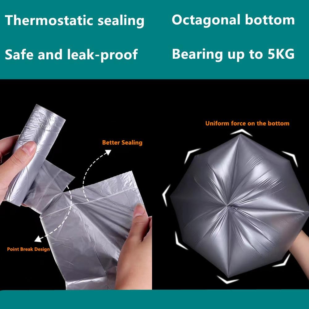 - MULTIFUNCTION HANDLES TRASH BAGS: Perfect small plastic waste bags for office, kitchen,bathroom, bedroom, living room,baby diapers,car, cleaning pet's litter.12 rolls grey color garbage bags . You can choose different colors of garbage can lining according to different household garbage