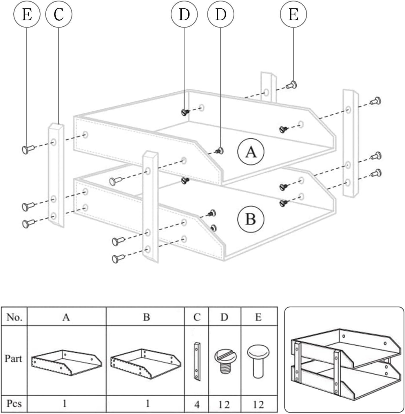 - Easy to install: We provide the parts needed for assembly, layer by layer, you only need to tighten it with a screwdriver. Taking into account the packaging and transportation links, please check the items and accessories at the same time as the buyer receives the goods: 2 file trays, 2 brackets, and a small bag of hardware (including 8 sets of screws and above)