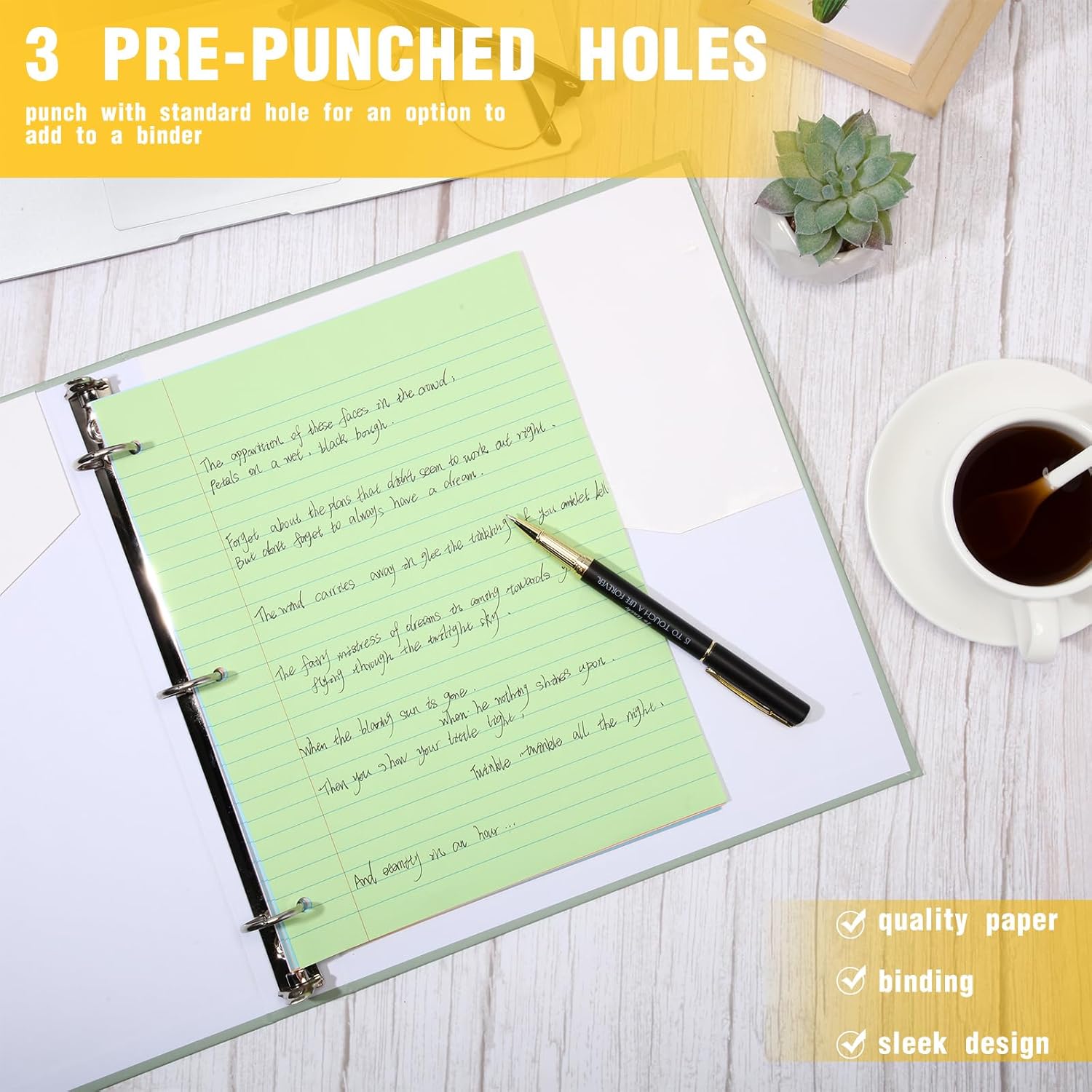 - Compatible with Ring Binders: our college ruled paper has 3 punched holes, making it fit standard ring binders and pocket folders with fasteners, and it can also be applied as standalone sheets