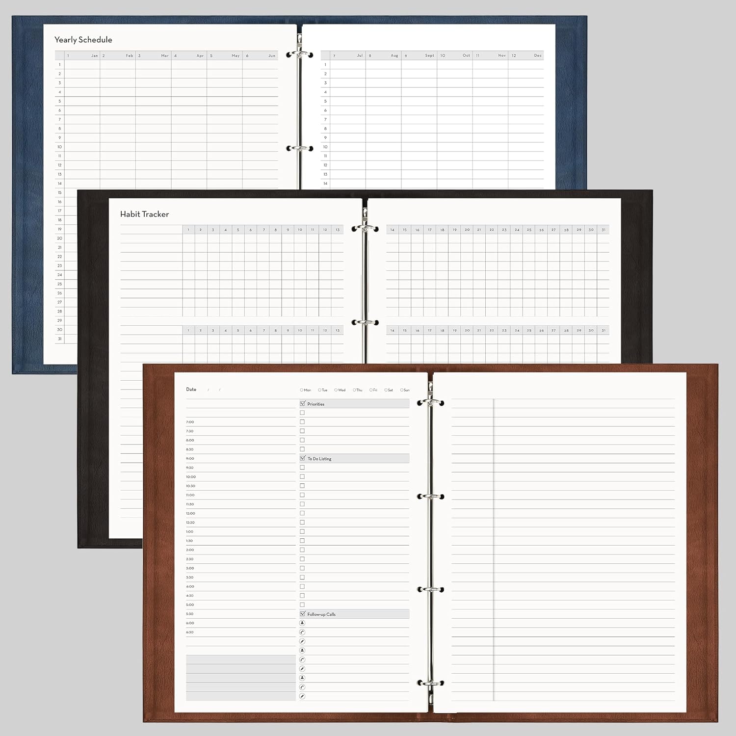 - Efficient organization: Undated daily planner with yearly schedule, habit tracker, to-do lists, priorities, follow-up calls, lined pages, and 30-minute schedule from 7:00 am-6:30 pm, all in one place. Perfect for school, work, daily planning, office organization, academic agenda