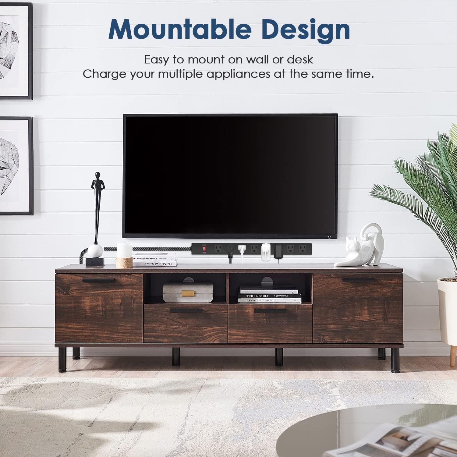 - 【8 in 1 Power Strip】This mountable power strip features 8 outlets and 1 switch, providing you with multiple options to connect your devices. With a 6 feet 14AWG braided cord, it ensures durability and easy reach to power sources. Rated at 1200J, 1875W, 15A, 125V, 60Hz, and with SGS certification, it guarantees safe and reliable charging.
