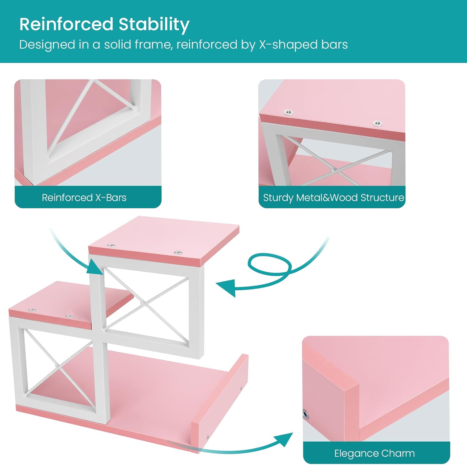 ELITEROO Desktop Shelf, Aesthetic Desk Organizer Table Top Mini Bookshelf, 3 Tier Wooden Desk Supplies Organizers and Storage Stand Cubicle Accessories for Women Office, Pink