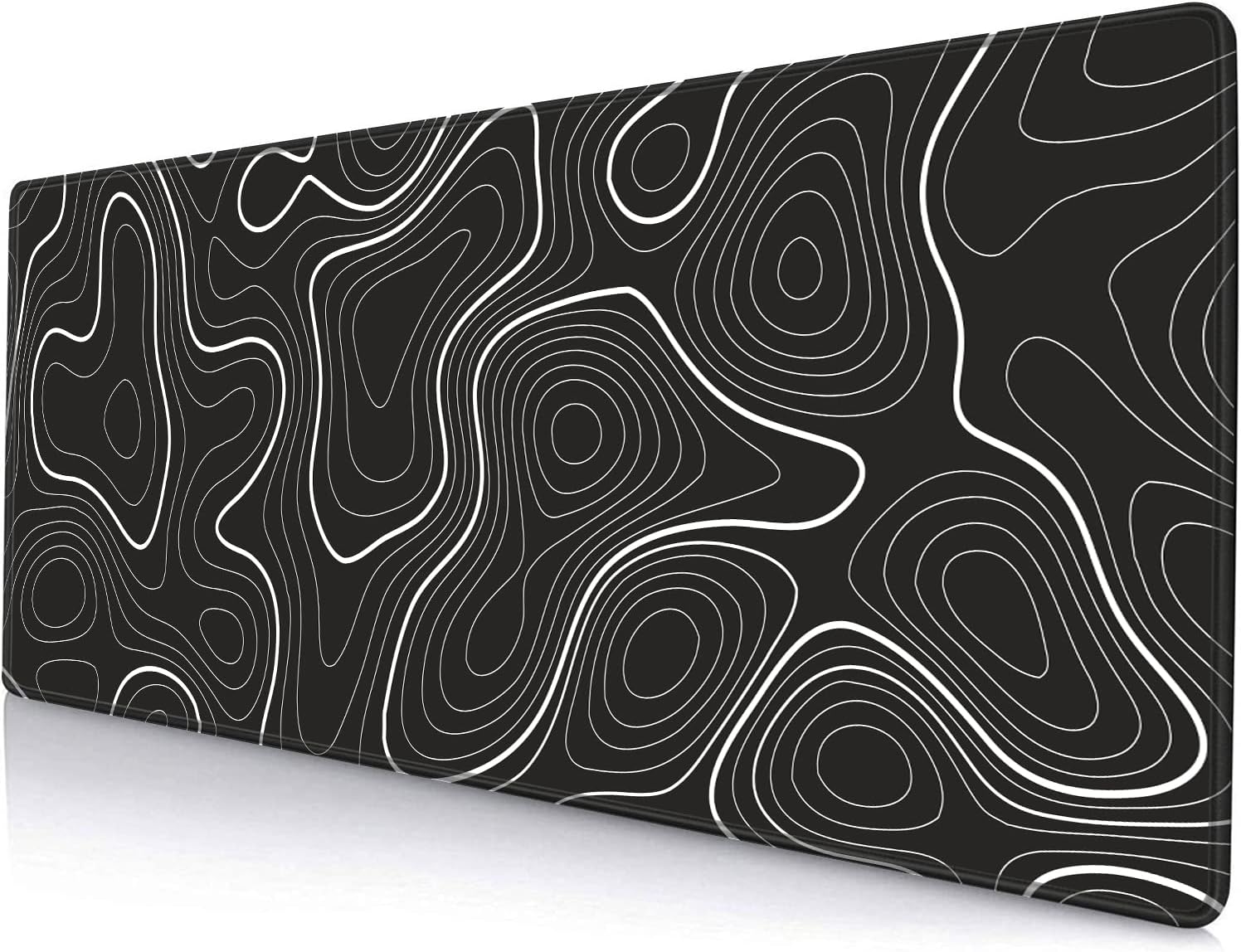 Hokafenle Large Gaming Mouse Pad, XL Extended Desk Keyboard Mouse Mat with Stitched Edge, Black Line Non-Slip Computer Mousepad for Office Laptop, 31.5x11.8inch