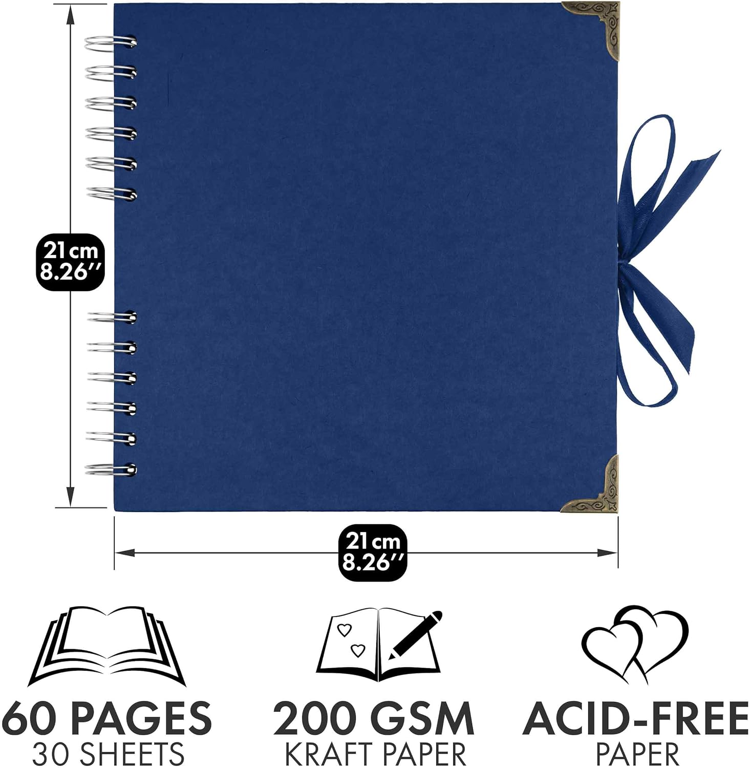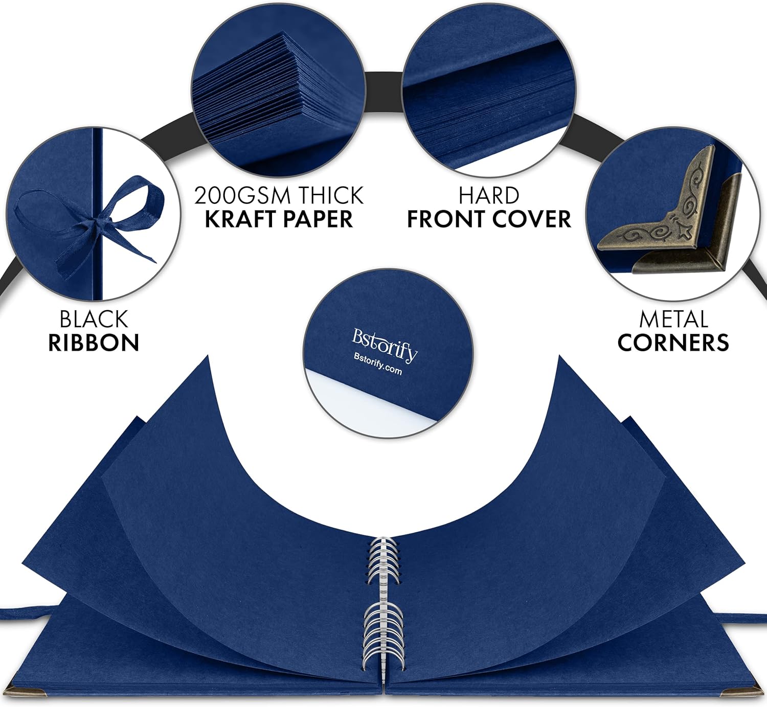 Bstorify Square Scrapbook Photo Albums 8 x 8 Inch Blue Hardcover with Ribbon Closure - Ideal for Scrapbooking, Art & Craft Projects