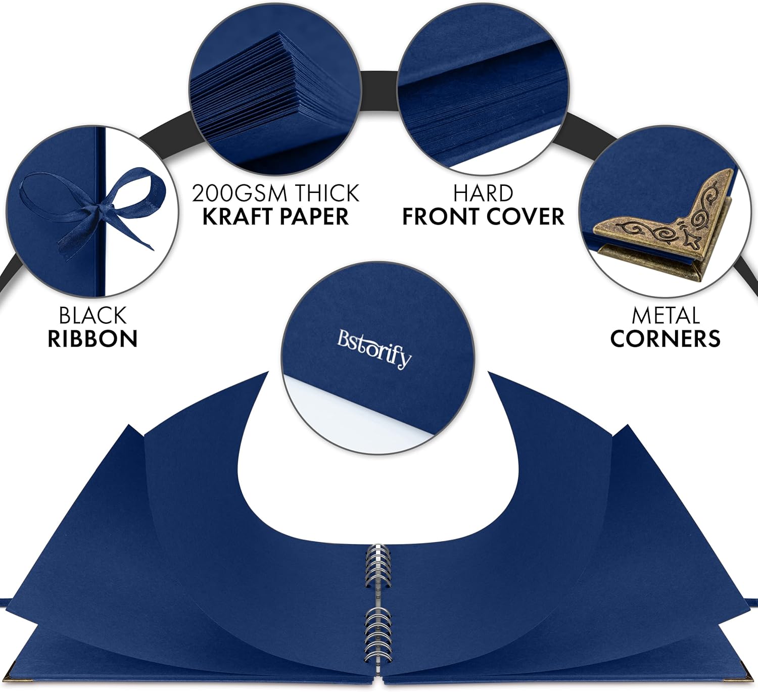 Bstorify Square Scrapbook Photo Albums 50 Pages (11 x 8.5 Inch) Blue Thick Paper, Hardcover, Ribbon Closure - Ideal for Your Scrapbooking Albums, Art & Craft Projects (Blue, 11 x 8.5 Inch)