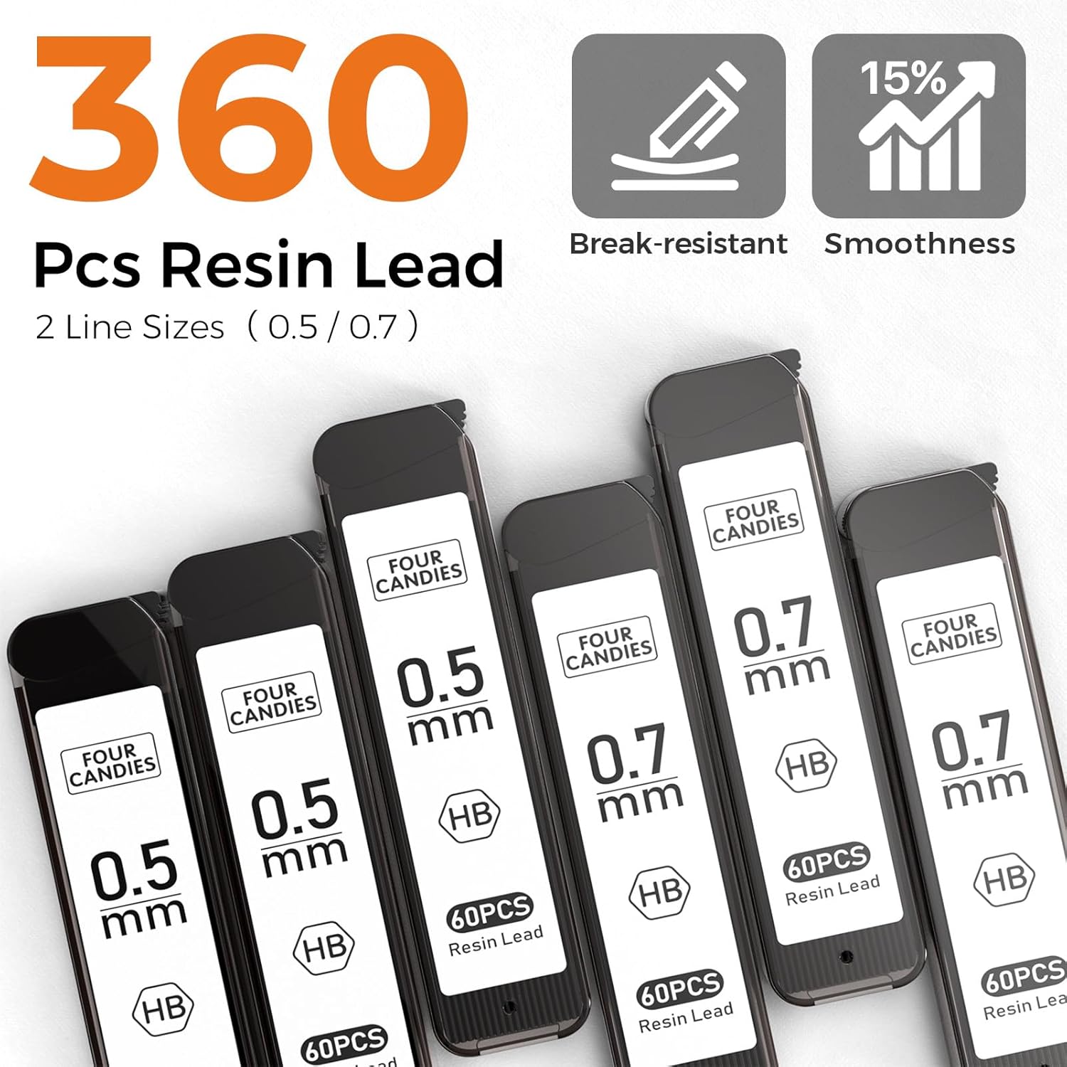 • 【360PCS Resin Lead】6 tubes of 60pcs super capacity leads. A more durable resin lead which doesn’t require sharpening and is not easy to break at the tip or break in the shaft, provides ultra-smooth writing and clear dark lines.