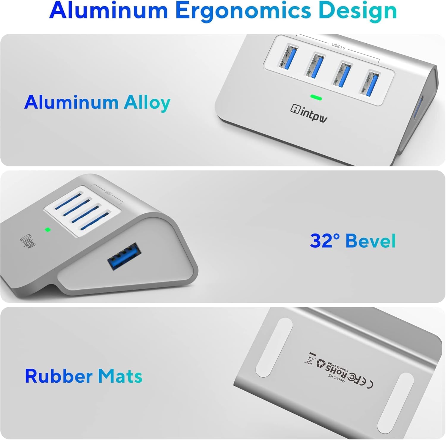 - γππ₯ππ’π‘π’π πππ¦ πππ¦πππ‘γ:The USB Hub for computers is made of aluminium unibody with a smooth appearance and better heat dissipation, which provides High quality protection. The extra usb ports for laptops temperature is controlled below 45β to ensure the safety and stability of all USB ports during operation.The usb 3 hub Ergonomic 32-degree angle saves effort when plugging and unplugging USB devices and makes it more stable on the desktop.