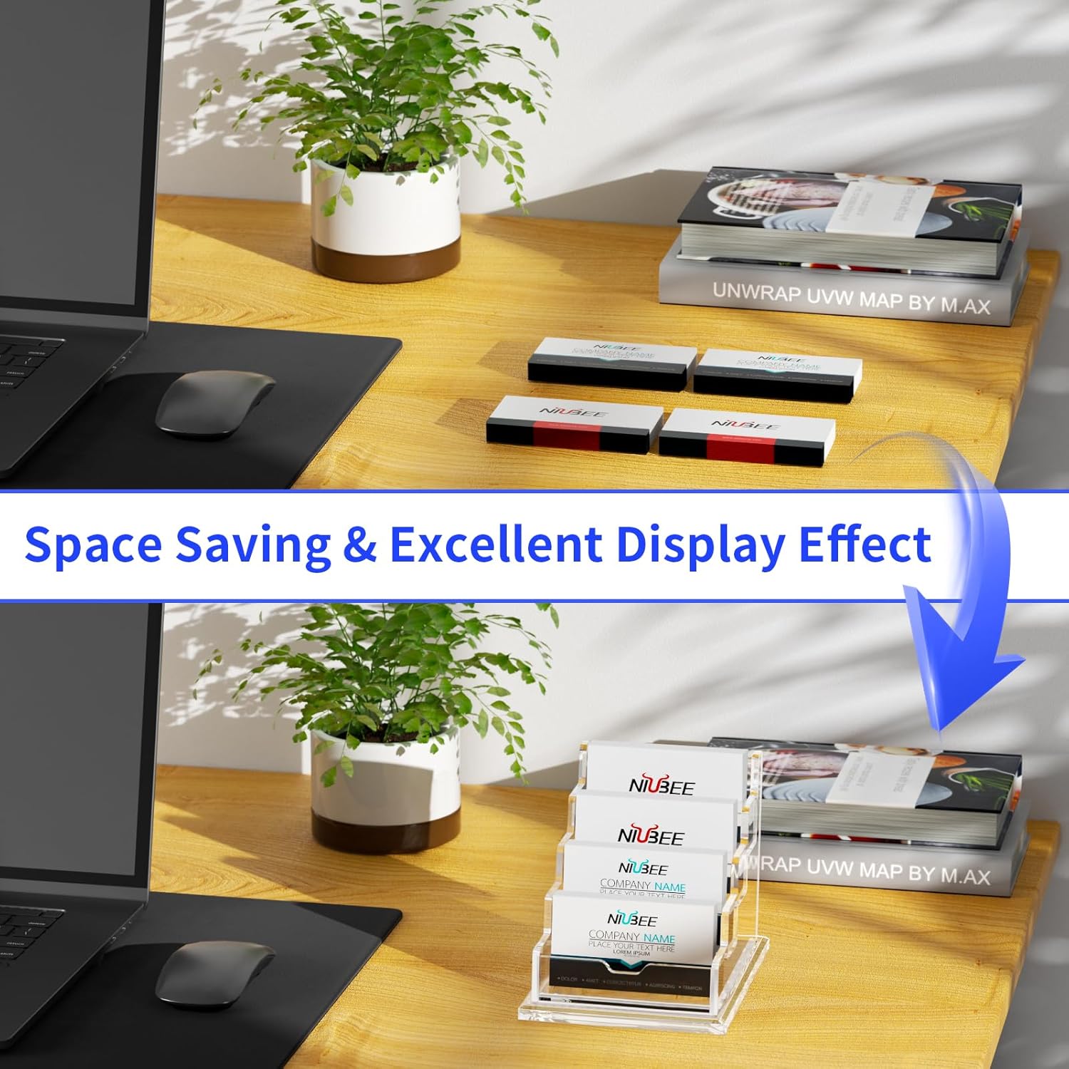NIUBEE Clear Business Cards Holders 4 Tier Acrylic Card Holder for Business Cards, 4 Slots Business Card Display for Desk Counter, 300 Card Capacity, 1 Pack