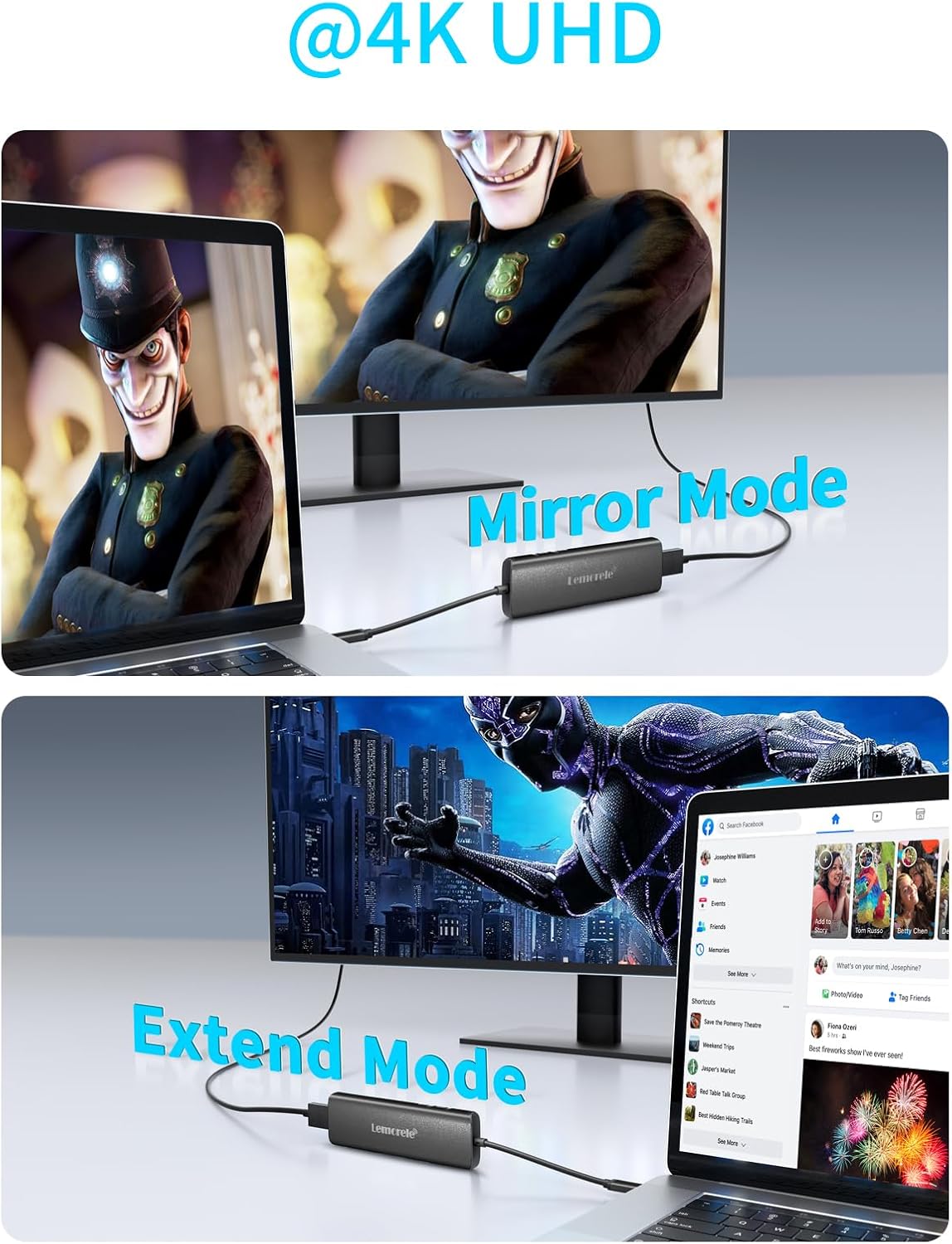 - 【Wide Compatibility】Lemorele usb c hub adapter compatible with all systems and devices with USB C ports that support video output; such as Switch/Xbox/PS4/Chromecast with Google TV, Mac OS/Windows/Chrome OS/Android/iOS/Linux and compatible with MacBook Pro/Air M1, iMac, iPad Pro/Air M1, Dell XPS, Asus Zenbook, Huawei, HP, Lenovo , Microsoft Surface. and various mobile phones, keyboards, mice and other external devices.