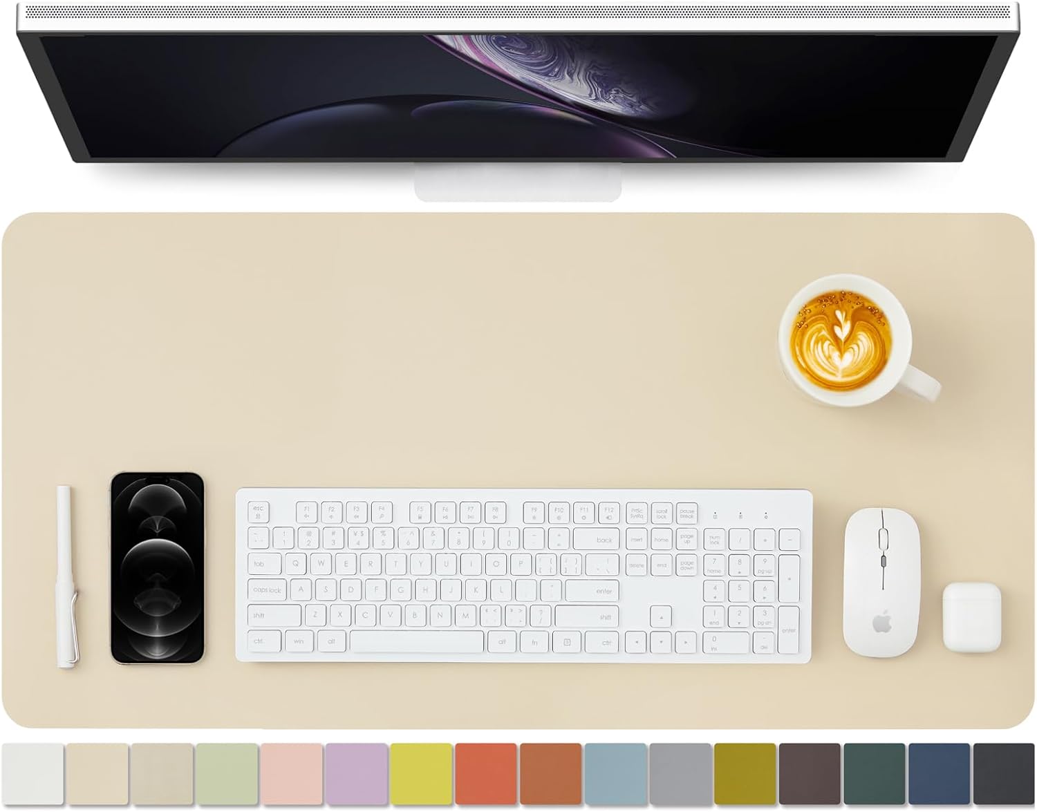 Leather Desk Mat - Non-Slip PU Desk Pad for Office and Home - Desk Organization and Accessories - Ideal for Large Mouse Pad and Desk Mats on Top of Desks (Beige,31.5"x 15.7")