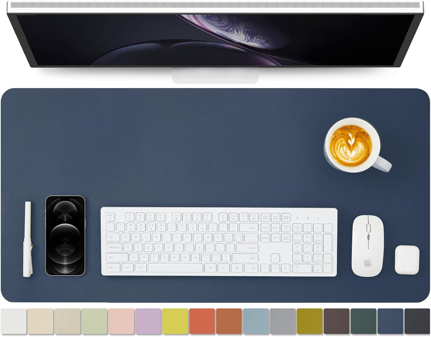Leather Desk Mat - Non-Slip PU Desk Pad for Office and Home - Desk Organization and Accessories - Ideal for Large Mouse Pad and Desk Mats on Top of Desks (Dark Blue,31.5"x 15.7")