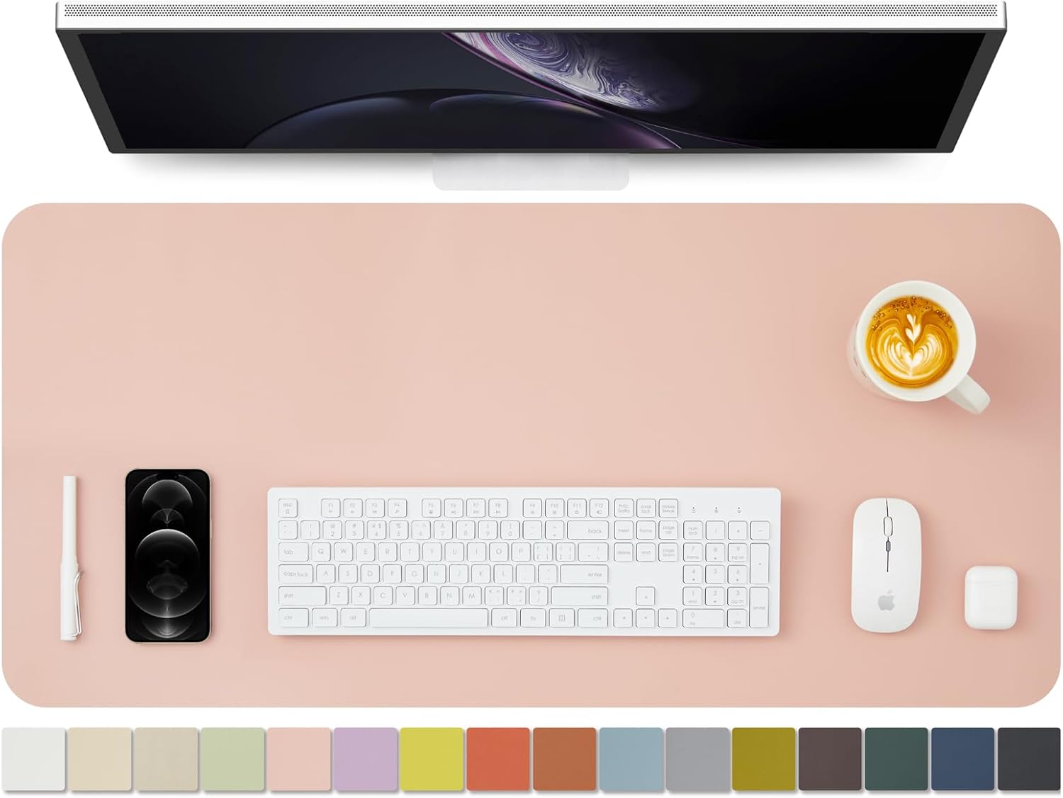 Leather Desk Mat - Non-Slip PU Pad for Office & Home - Organization Accessory - Ideal for Large Mouse Pad & Desk Mat (Pink, 36"x 17")