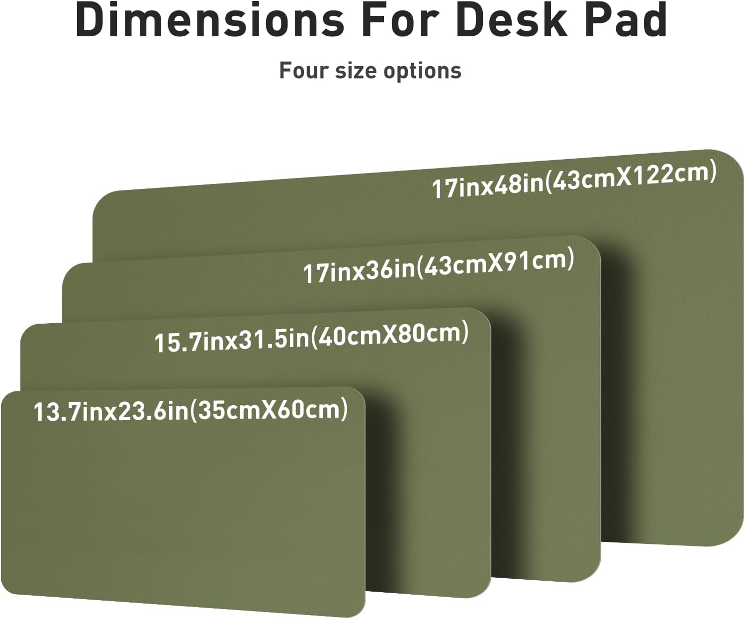 Aothia Leather Desk Pad Protector, Mouse Pad, Office Desk Mat, Non-Slip PU Leather Desk Blotter, Laptop Desk Pad, Waterproof Desk Writing Pad for Office and Home (48"x17", Olive Green)