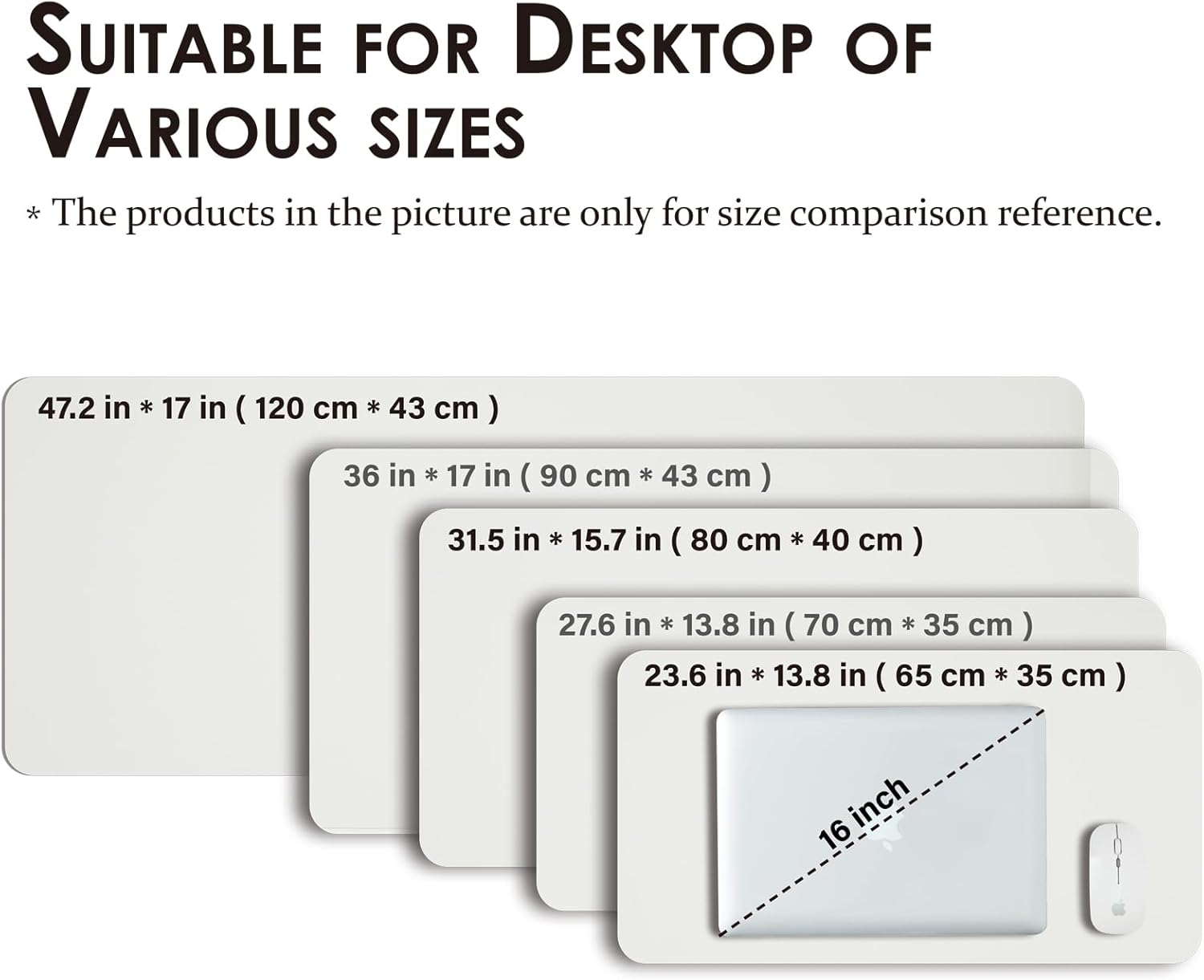- Versatile Sizes & Comfortable Touch: Choose from Multiple sizes - all with a 1.5mm thickness for comfort. Perfect for different settings, the compact sizes (23.6"x13.8") for small desks, standard options (27.6"x13.8", 31.5"x15.7", 36"x17") for daily office use, and expanded layouts (47.2"x17") for spacious multi-device setups.