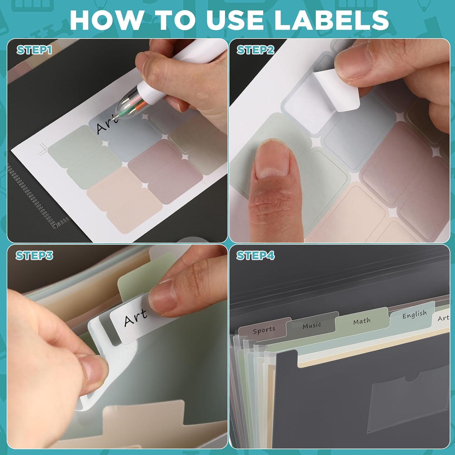 - Expanding File Organization: this expanding file folder organizer with 7 pockets allows you to efficiently sort and keep your files, documents, receipts and bills in one place; Its expandable pockets with labels make it easy to find the right file faster than ever; The gray, green, pink and blue colors make it fun and easy to color code your files