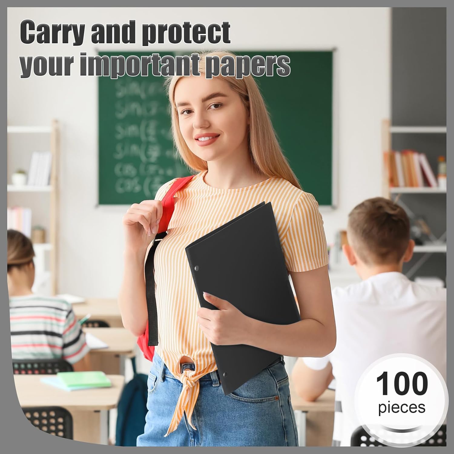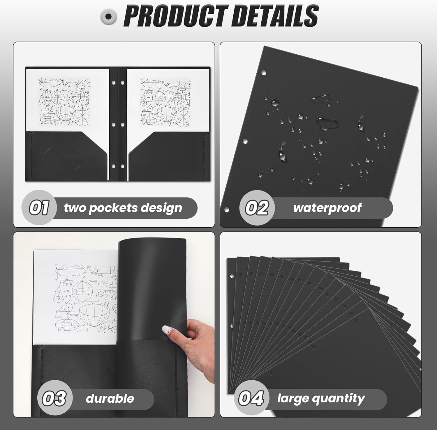 - Enough Quantity to Use and Replace: you will receive 100 pieces black plastic pocket folders, each with 3 holes and 2 pockets, fitting 3 ring binders and 8.5 x 11 inch letter size paper; Each pocket easily and neatly stacks 50 pages of letter size paper