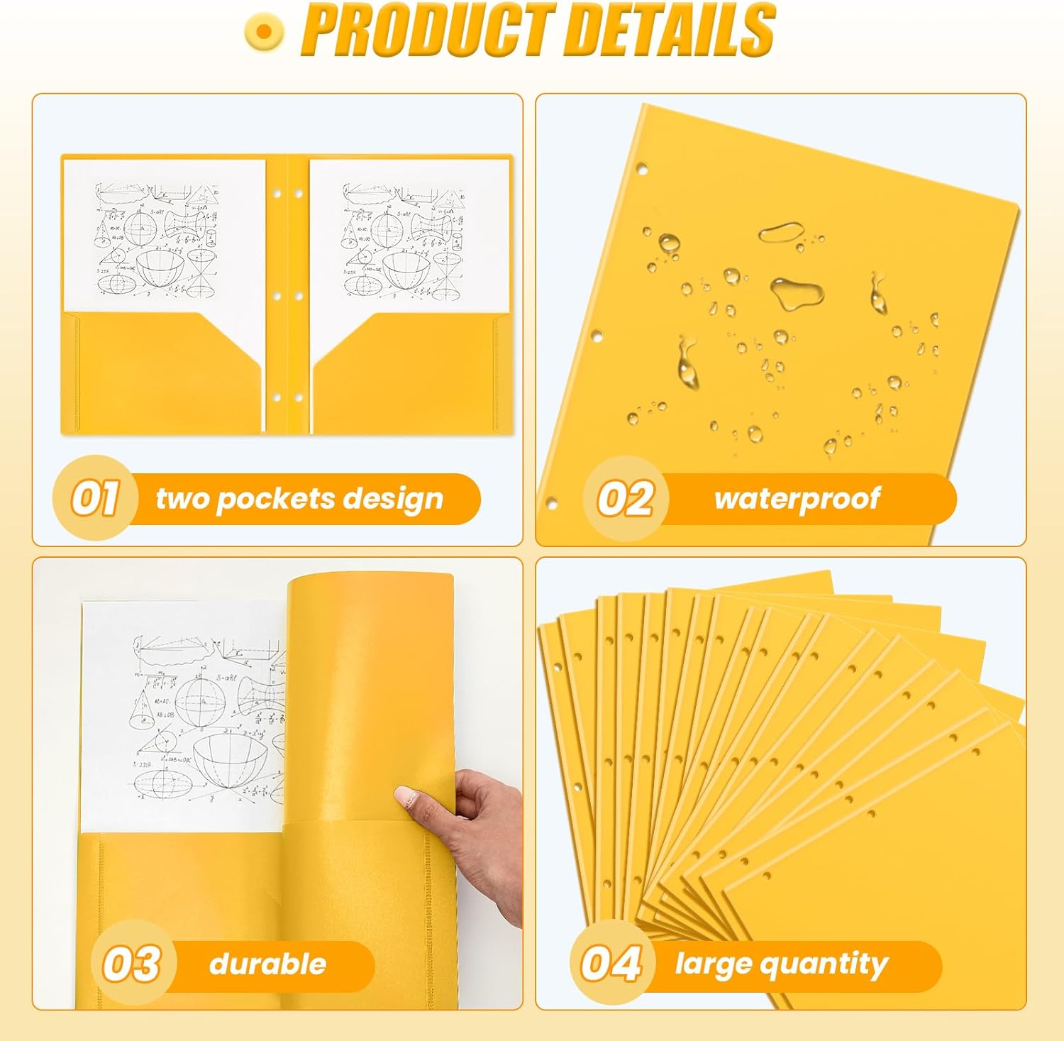 - Enough Quantity to Use and Replace: you will receive 100 pieces yellow plastic pocket folders, each with 3 holes and 2 pockets, fitting 3 ring binders and 8.5 x 11 inch letter size paper; Each pocket easily and neatly stacks 50 pages of letter size paper
