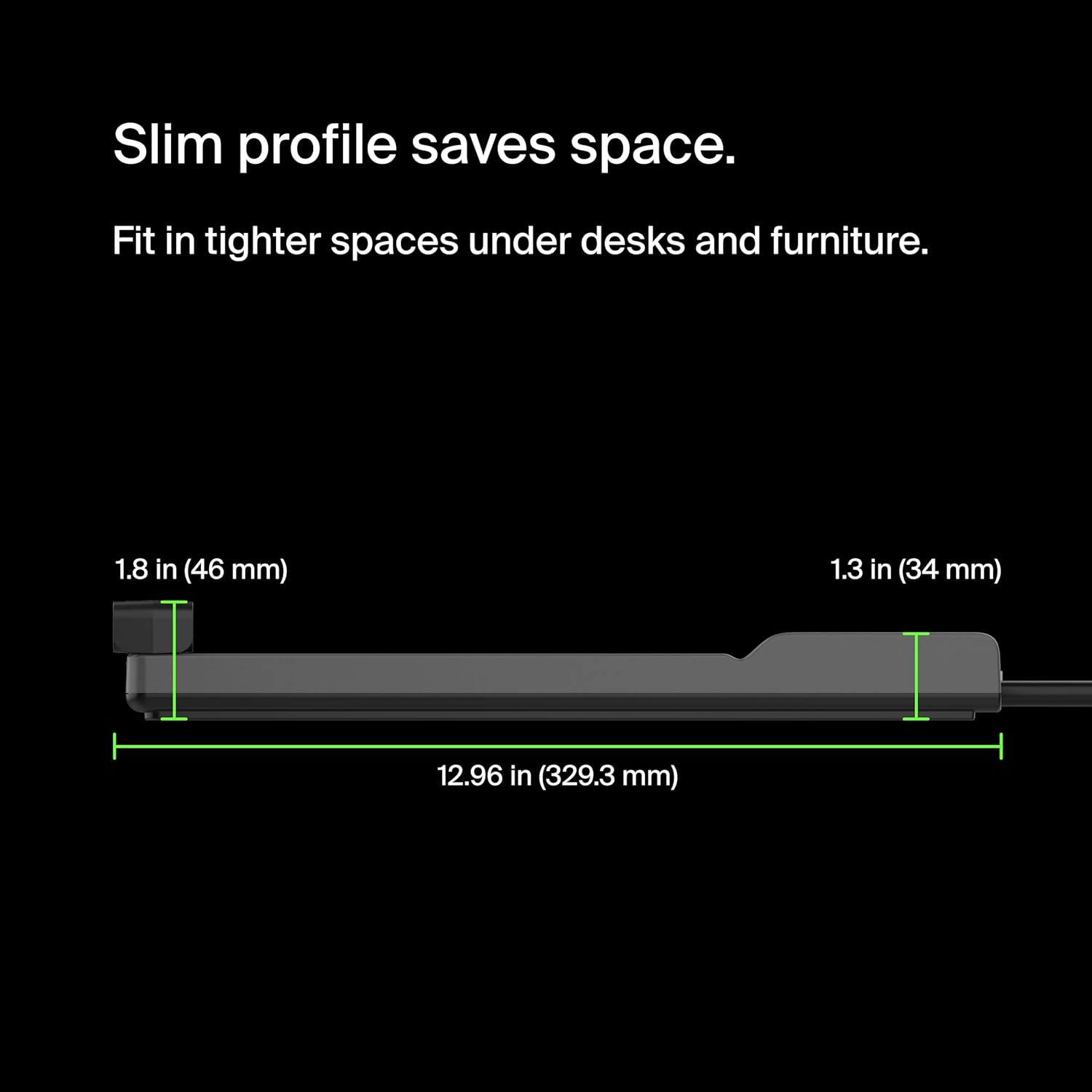 - COMPACT & HEAVY-DUTY FOR LASTING USE ANYWHERE: Widely spaced outlets give ample area to fit big plugs and chargerS. Its slender design is ideal for home office, workstations, and more. The 2.4M cord has a 3-prong angle plug convenient for tight spaces.