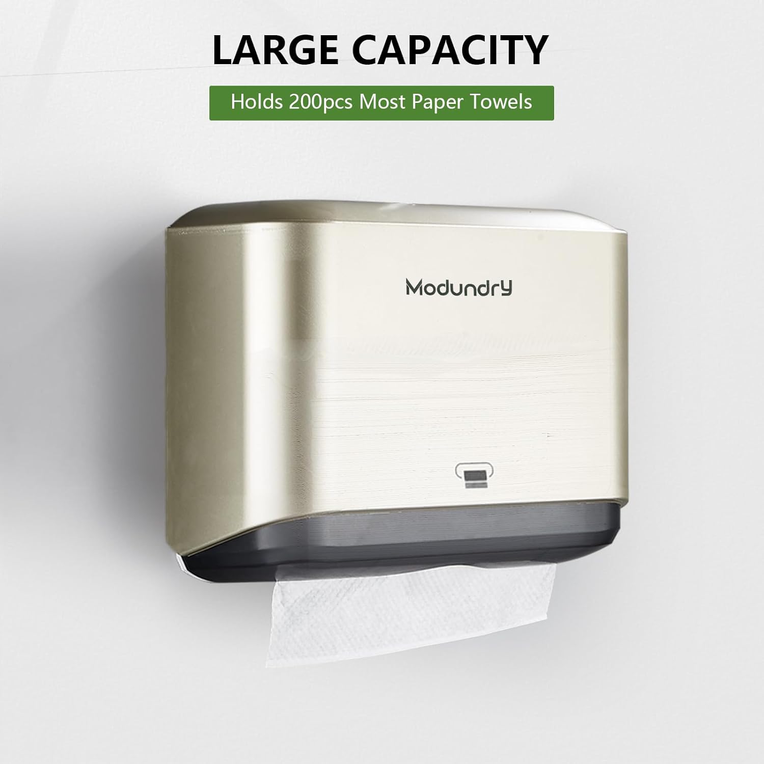 - Large Capacity: This paper towel dispensers can hold up to 200 sheets folded paper towels, C fold, Z fold, multifold, Single fold. Folded size smaller than 8.5"x 3.1βor small can be dispensed smoothly with the dispenser.