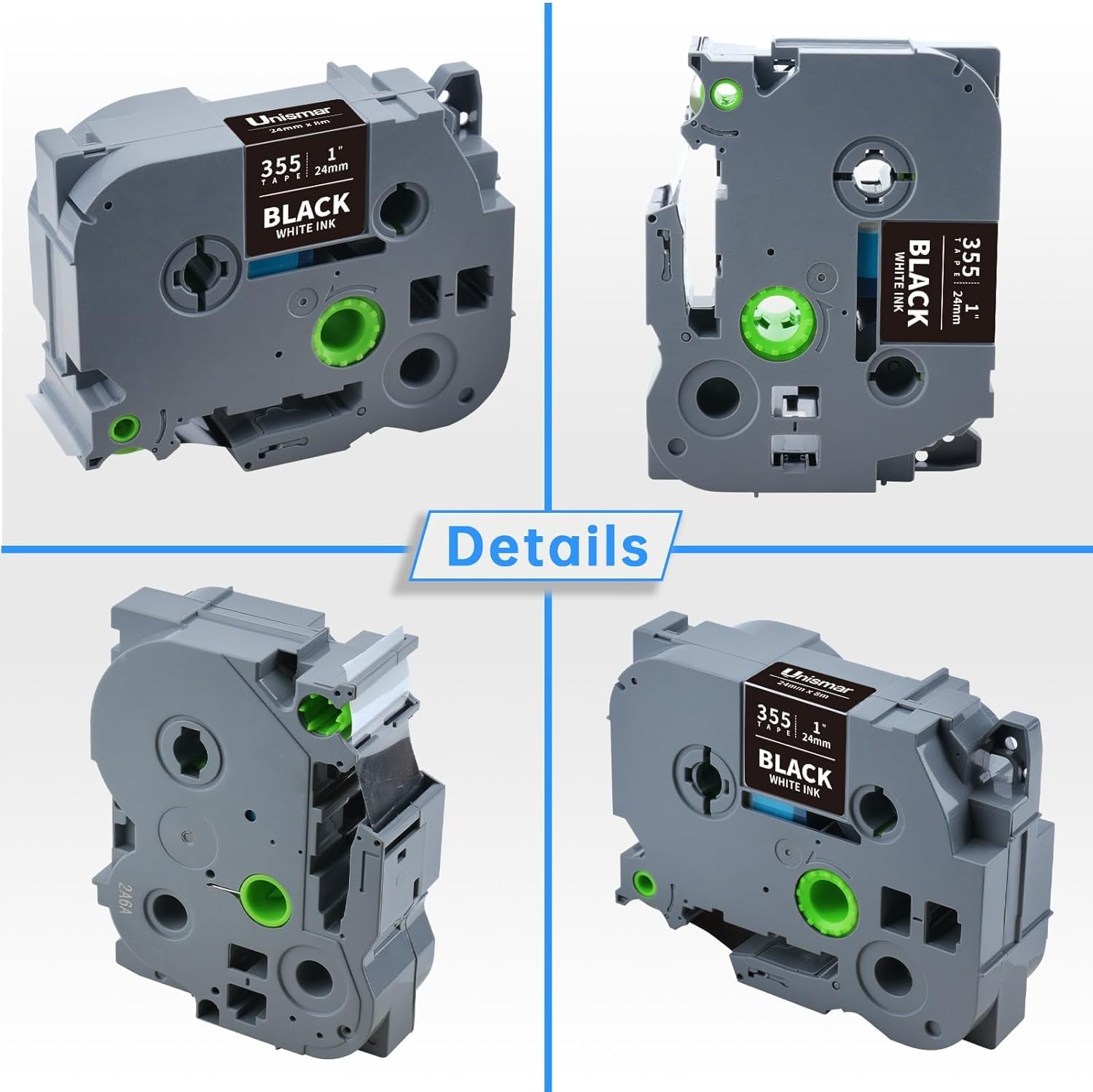 Unismar TZe-355 Compatible for Brother Ptouch 24mm 0.94 Laminated White on Black Label Tape TZ355 TZ Tape Work for PTD600 PT-P700 PT-2430PC PT-D600VP PT-D800W PT-P900W Label Maker, 1'' x 26.2', 4-Pack