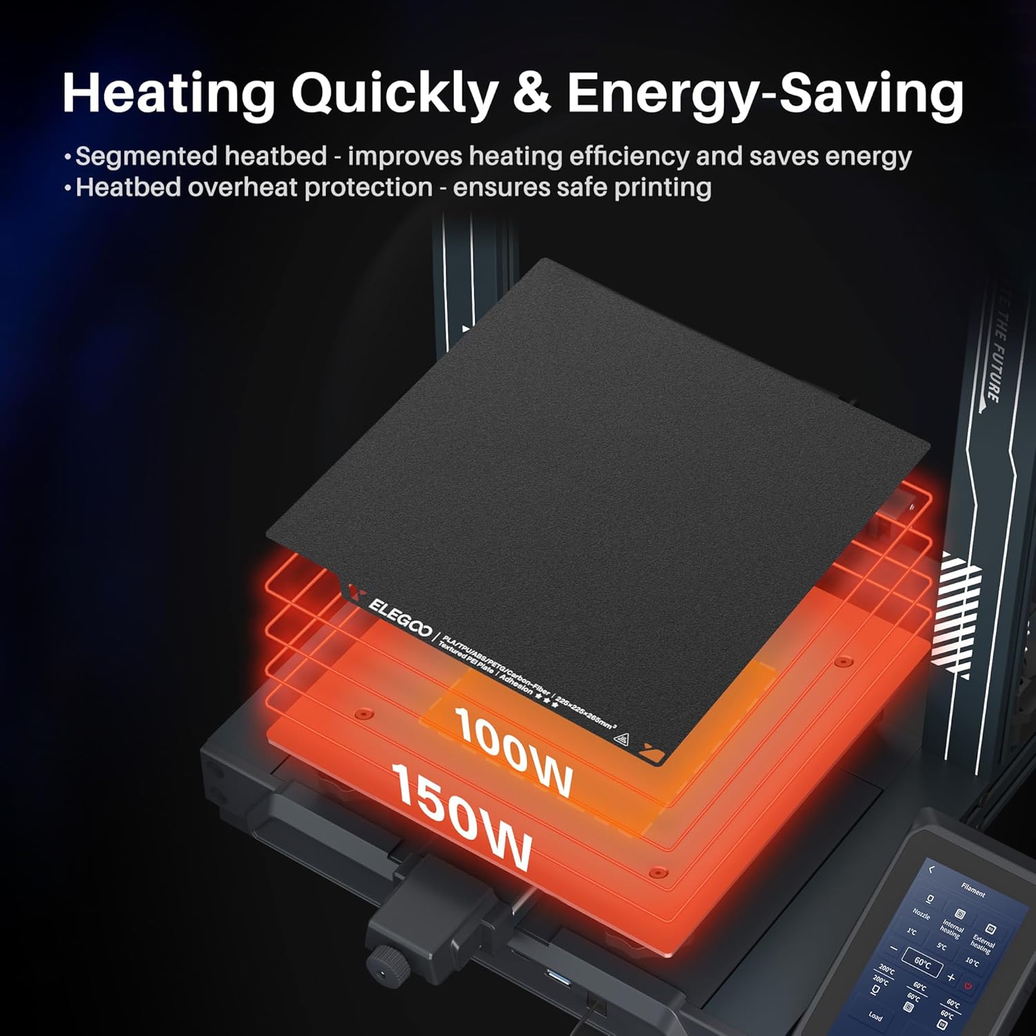 - SEGMENTED HEATED ZONES: The 3d printer has 2 independent heating areas . Slicing software automatically identifies the model size and activates peripheral heating zone if it exceeds the central heating zone. Significantly reduce power consumption and speed up heating