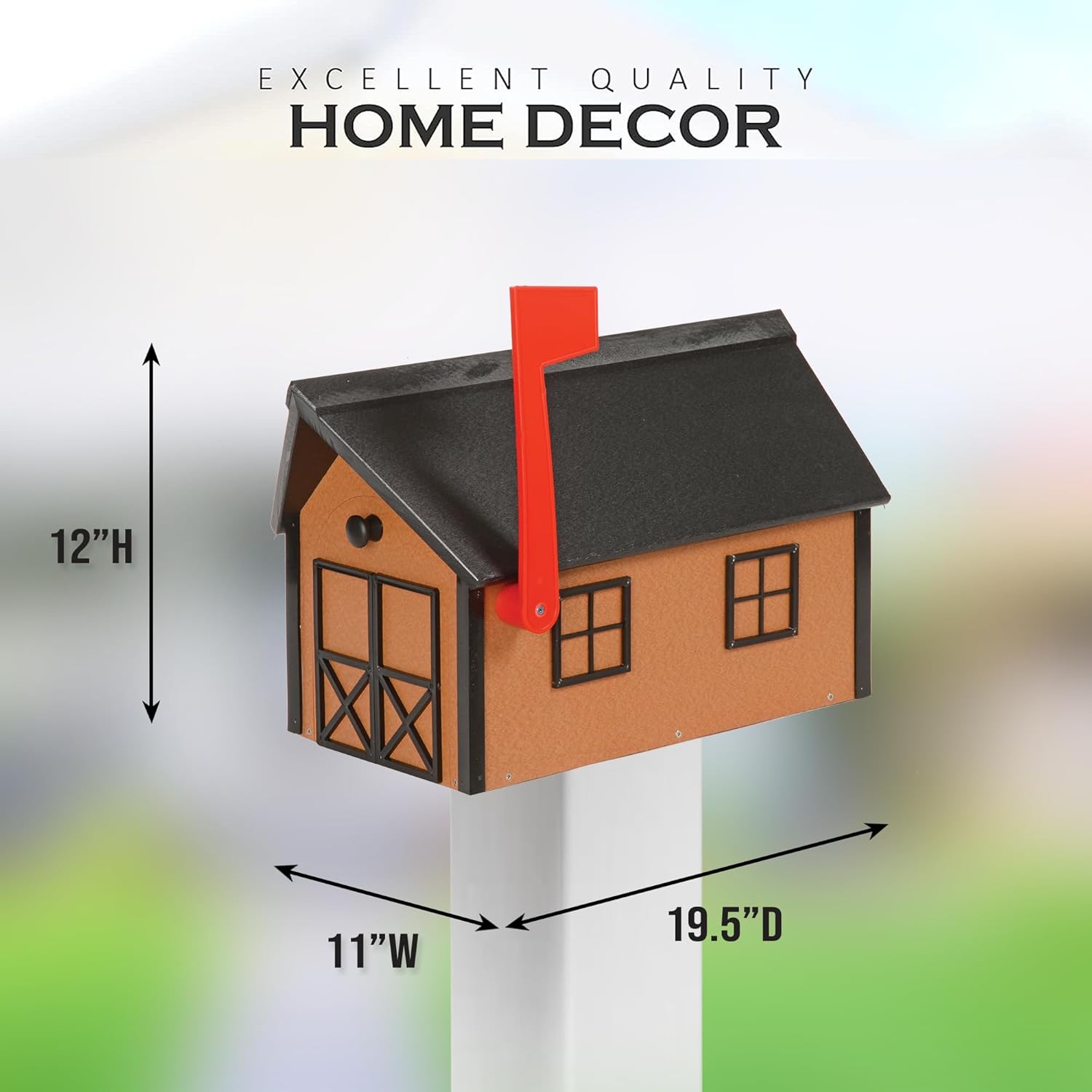 - PERK UP YOUR FRONT YARD: Peaceful Classics Poly Mailbox can add an artistic touch to your front yard. With our decorative 11" H x 19.5" D x 12" H mailboxes for outside, you can receive your every mail happily. This outdoor mailbox can add cheerfulness to your monotonous garden, door, and front yard.