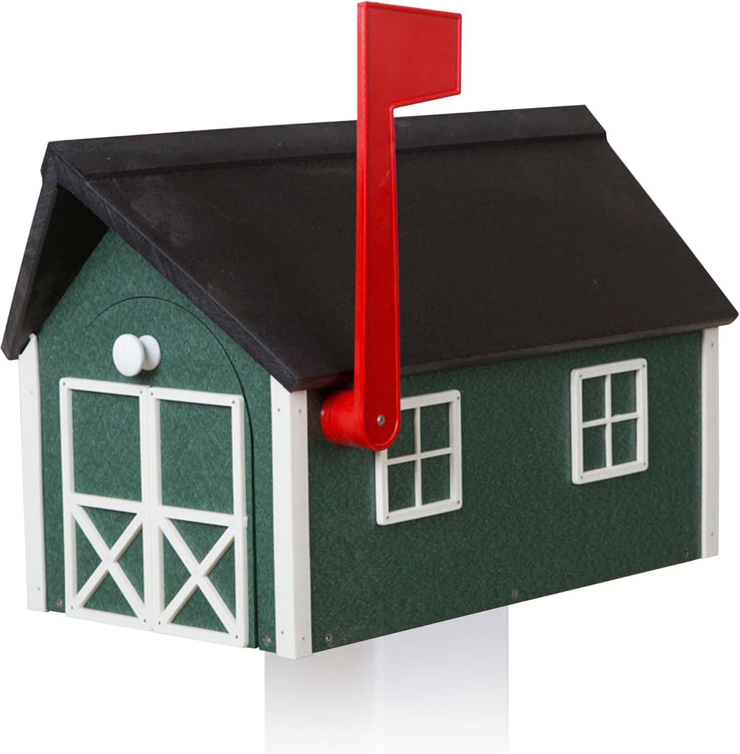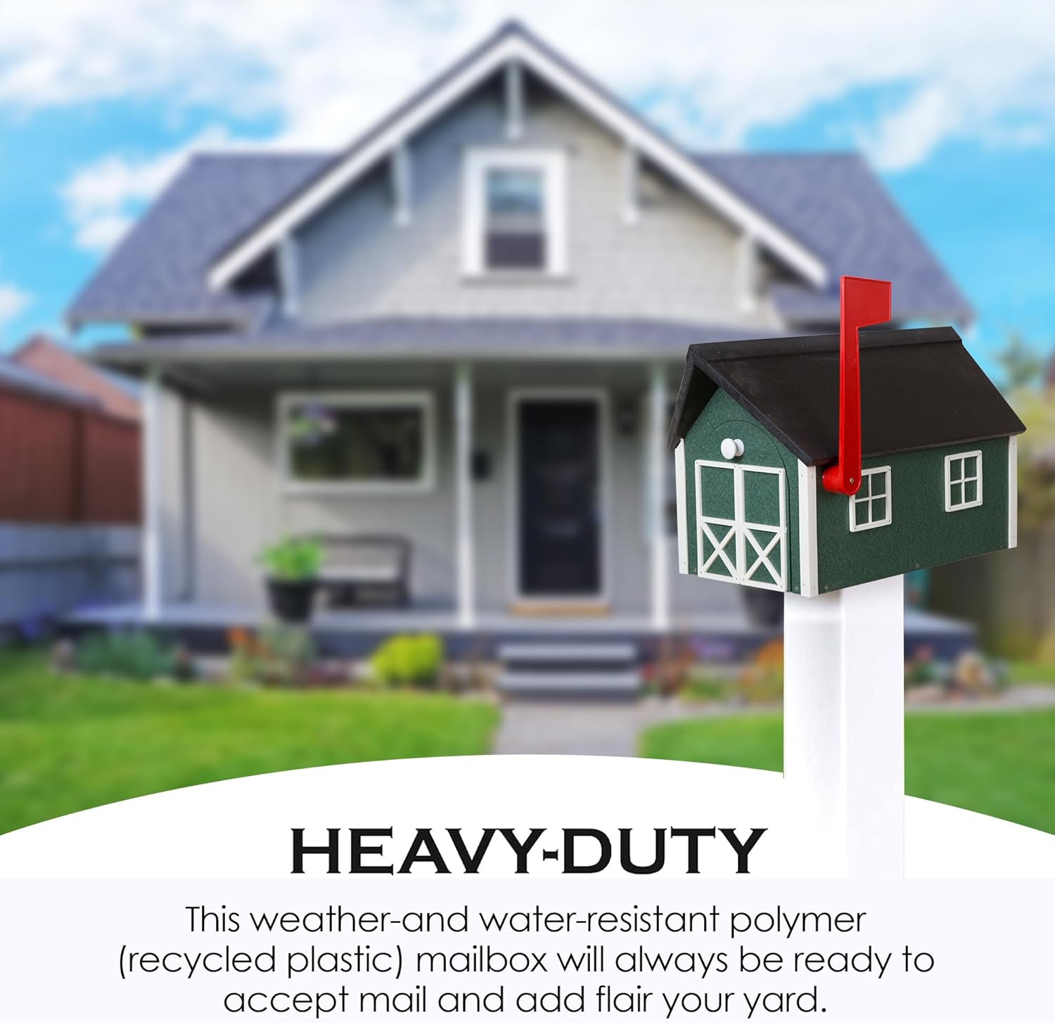 Peaceful Classics Poly Mailbox- Durable, Weather-Resistant Amish Craftsman Mailboxes for Outside Uses Like Front Yard and Road Side- Long-Lasting, Decorative, Modern Mailbox (Green with White Trim).