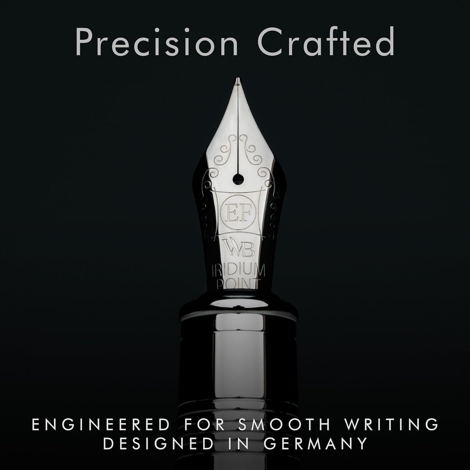 Wordsworth & Black Majesti Fountain Pen-(Checked), Luxury Case, Chrome Finish; Extra Fine Nib- Ink Cartridges, Refillable Ink Converter-Calligraphy Pen-Best Business Gift Set for Men & Women
