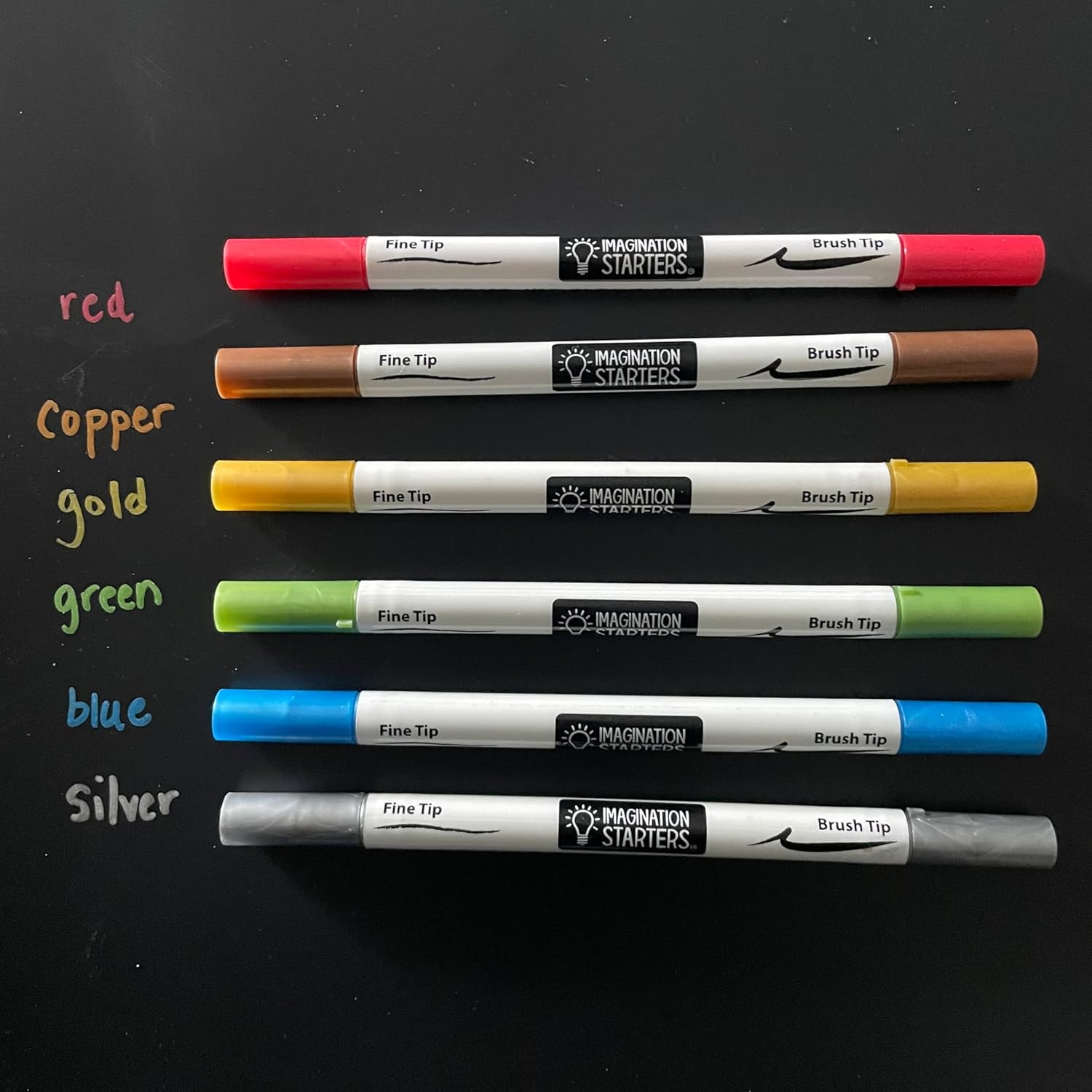 Metallic Liquid Chalk Markers for Chalkboard Signs, Coloring Mats, Window, Labels, Glass, Car- Wet Wipe Ink Chalk Board Markers, Dual Tip (Brush/Fine) Liquid Chalk Pens