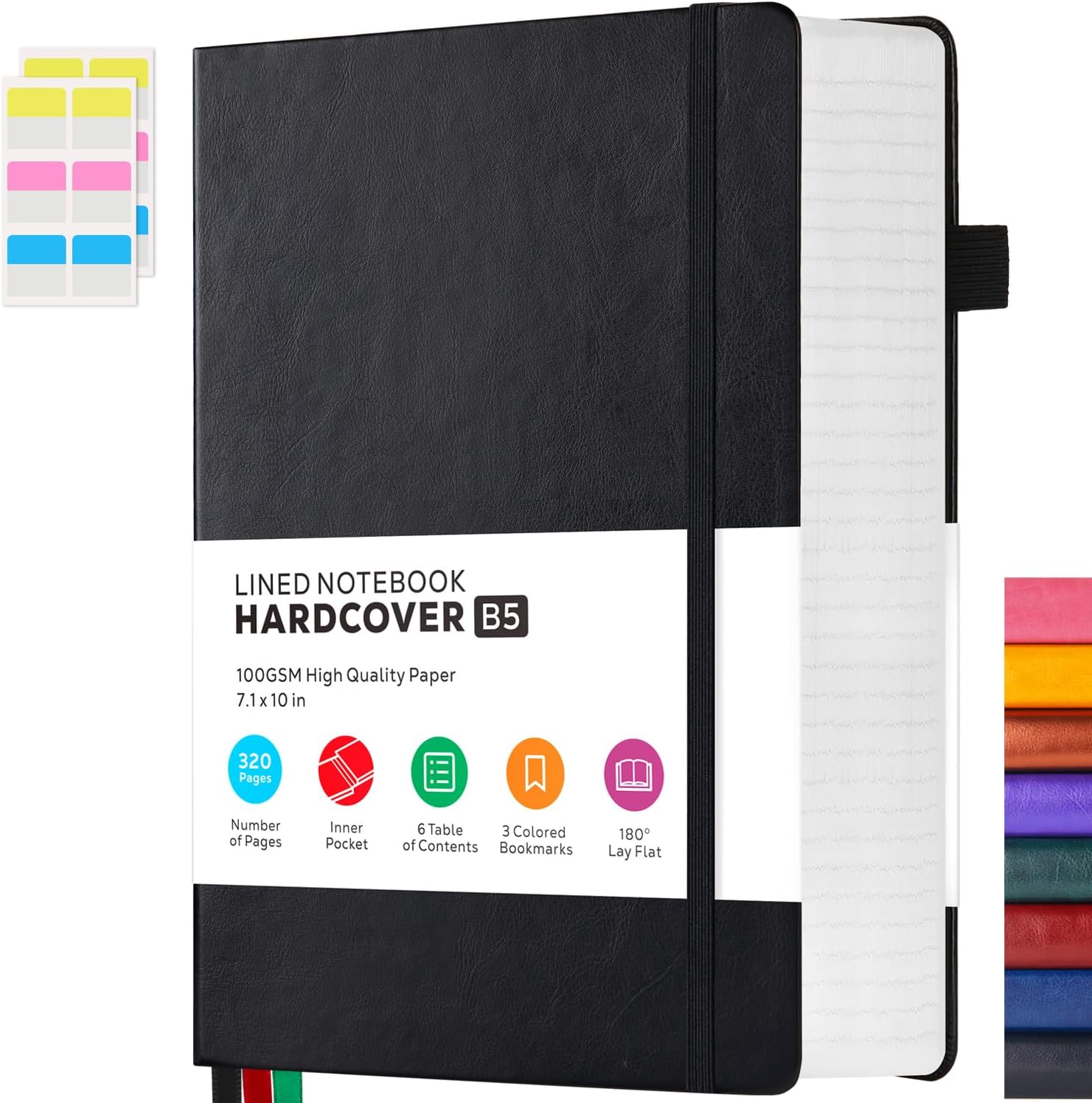 - 【320 Pages Hardcover Thick Notebook】This large B5 (7.1'' X 10'') size lined notebook journal has a total of 320 pages (including 6 catalog pages), 7mm space classic college ruled notebook, providing you with plenty of writing space. The notebook is made of 100gsm ivory thick paper, the paper is smooth, the writing is smooth, and the ink will not bleed, suitable for most pens.
