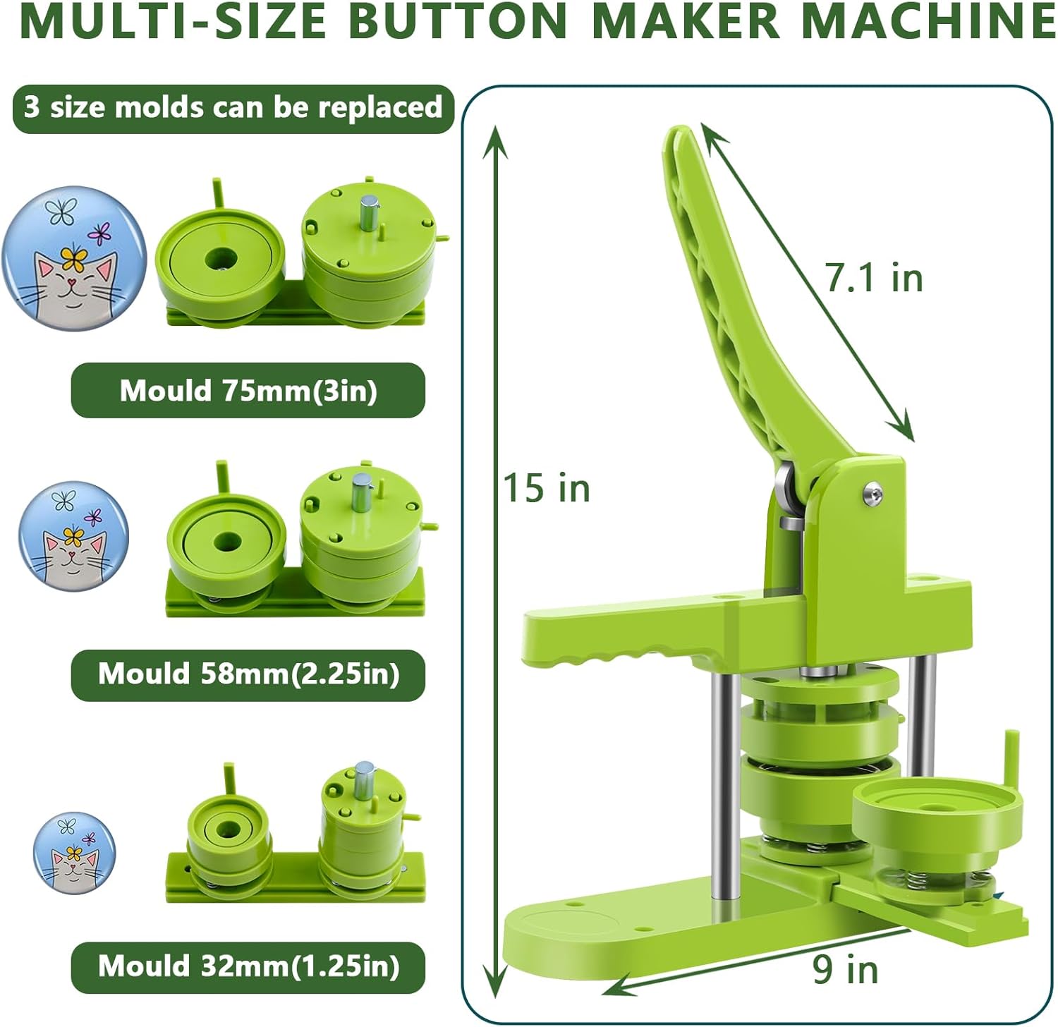 Button Maker Machine Multiple Sizes, DIY Pin Maker Button Press Machine 1.25+2.25+3 Inch, Removable Badge Press Kit with 300 Pcs 32mm+58mm+75mm Badge Supplies&Circle Cutter