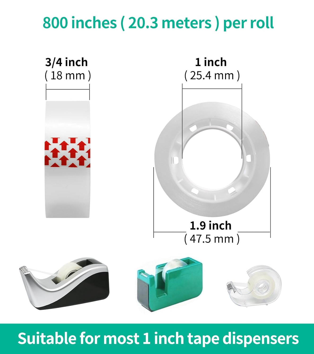 24 Rolls Transparent Tape Refills, Clear Tape Dispenser Refill Rolls, Glossy Gift Wrap Tapes for Office, School, Home, 3/4 x 800 Inches