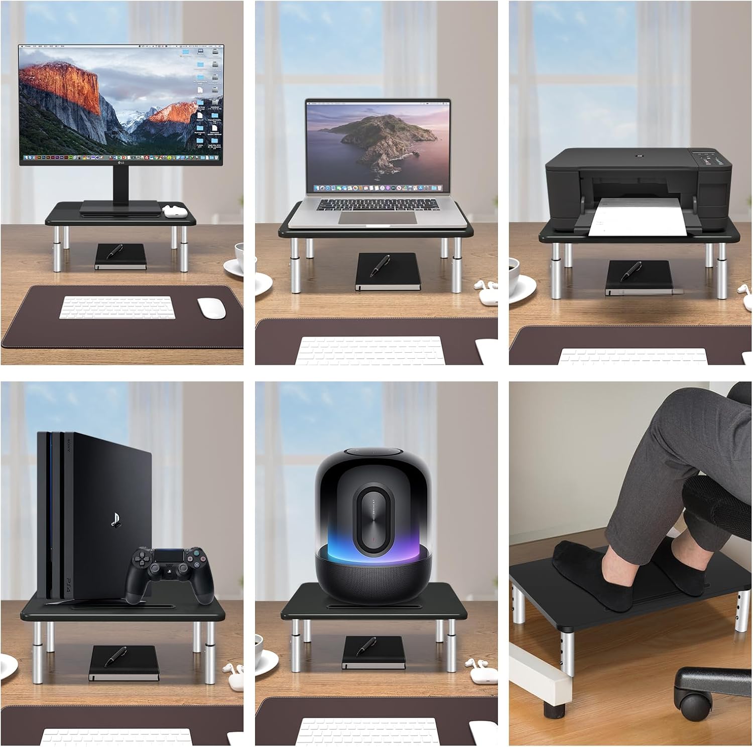 - SIMPLE ASSEMBLY - Our monitor laptop stand riser comes with 1 platform and 4 legs, all you need to do is just screw the 4 legs into the platform. No tools required. One minute is enough.
